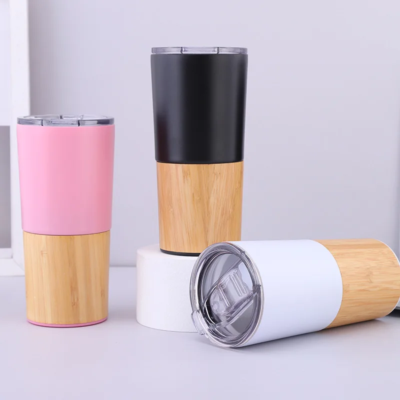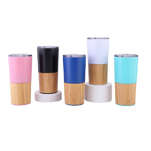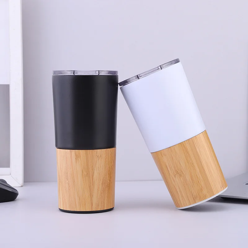 D5023 Metal Coffee Cup Modern Design Double-Layer 304 Stainless Steel Bamboo Shell Car Cup Portable Vacuum Coffee Cup