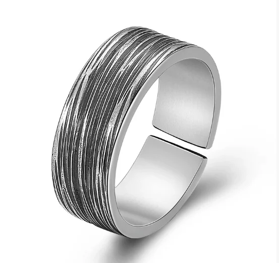 Wholesale A501 925 Sterling Silver Multi-layer Geometric Lines Ring Zircon Women Wedding Party Trendy Wide Face