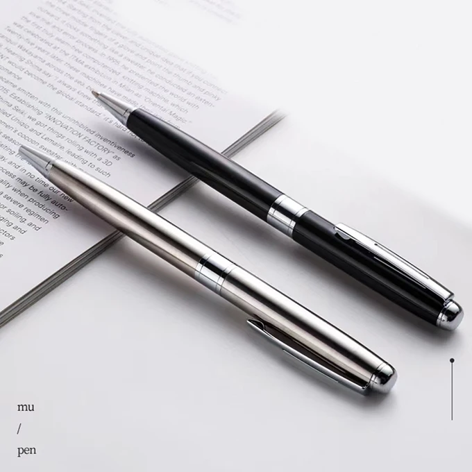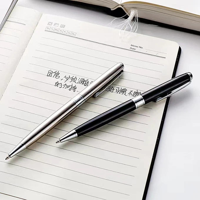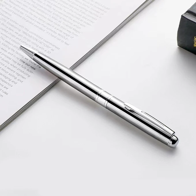 Promotional Gift High Quality Custom Engrave logo Print Silver Stainless Steel Metal Ball Point Pen