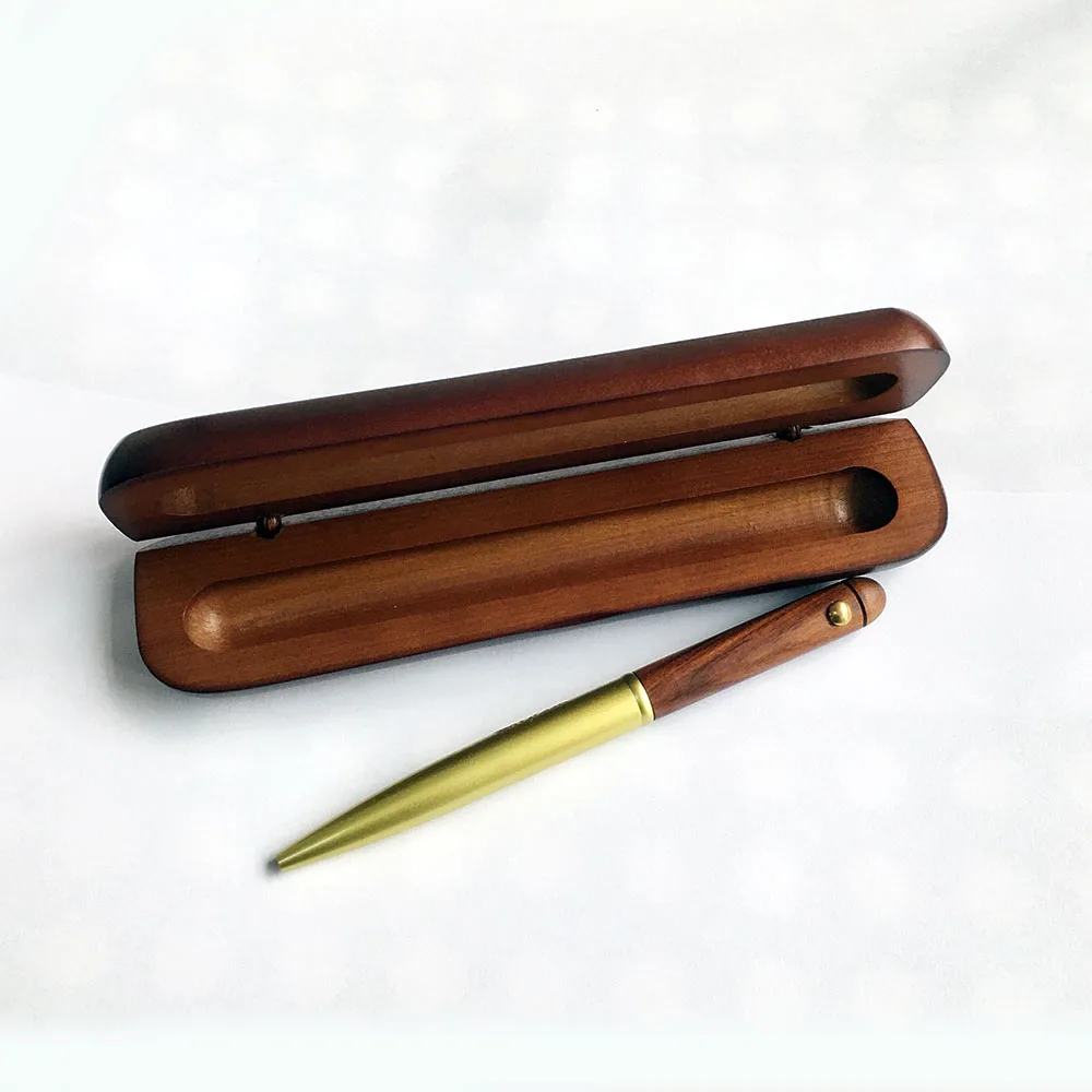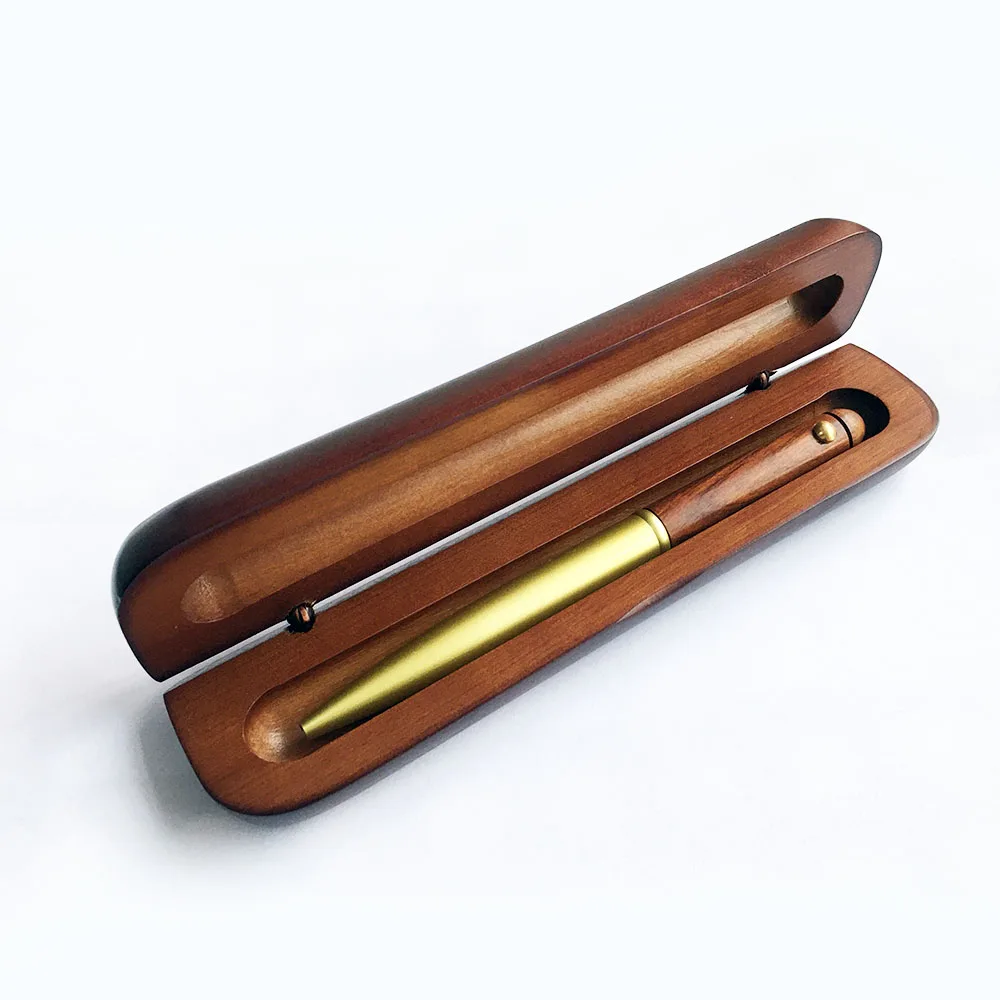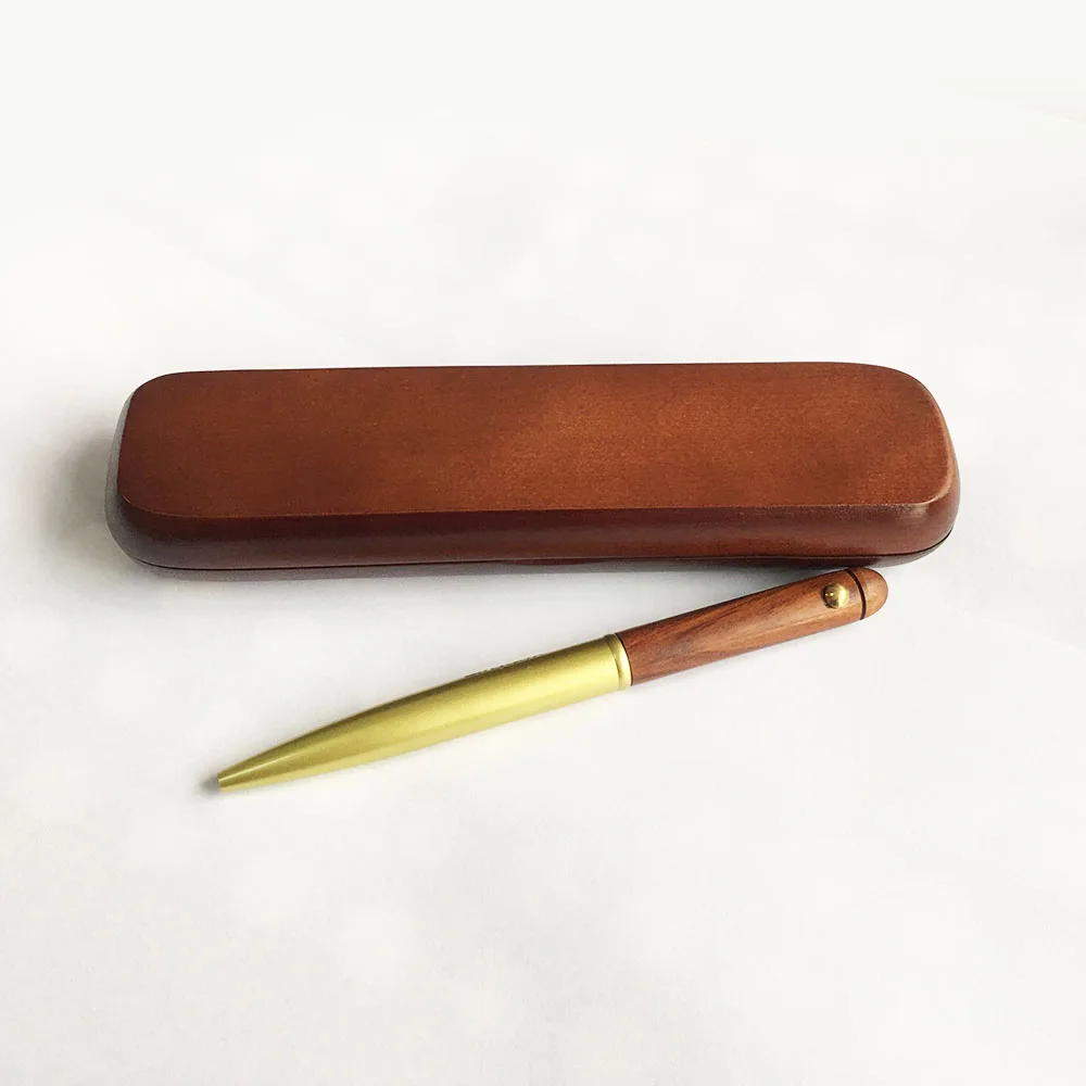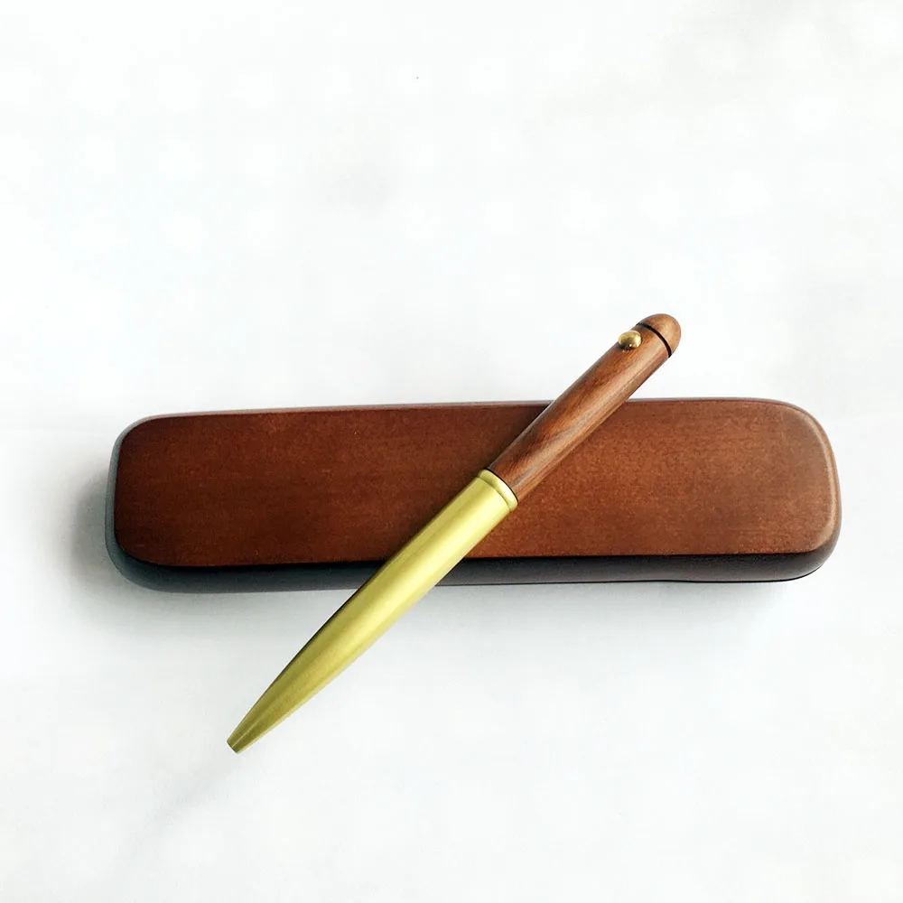 Factory Wood Pen With Custom Logo Ball Point Brass Wooden Pen Dark Brown Wood Case