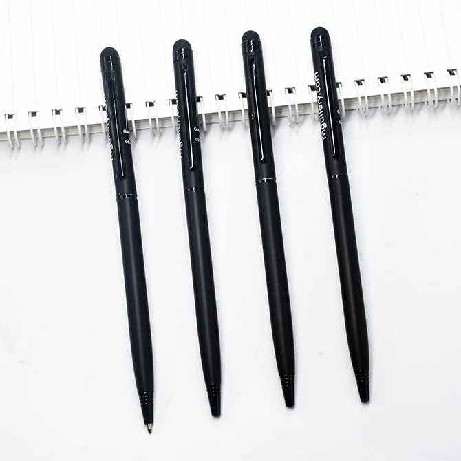 Hotel Pen Advertising Matt Black Promotion Custom logo Metal Slim Thin Twist Ball Touch Screenwriting Pen Ballpoint Pen
