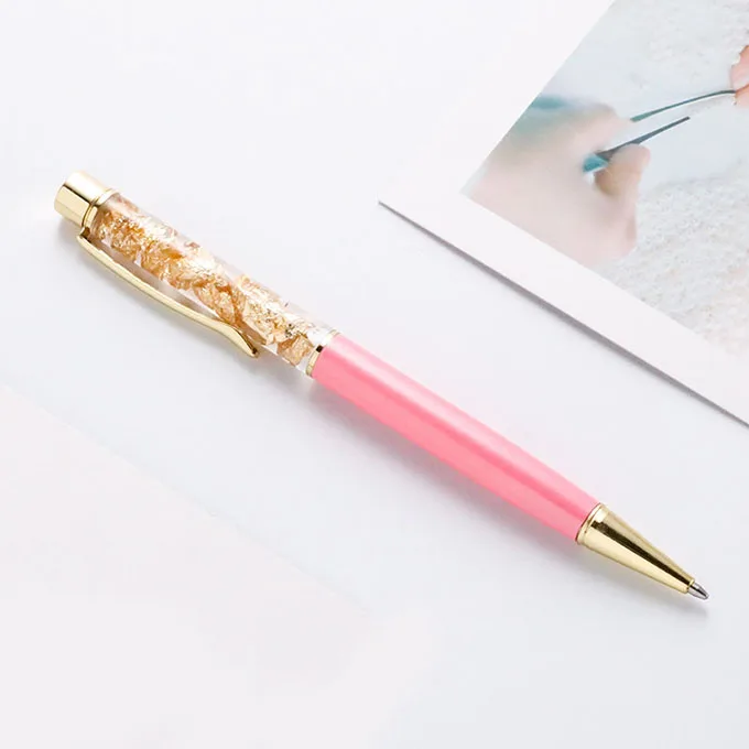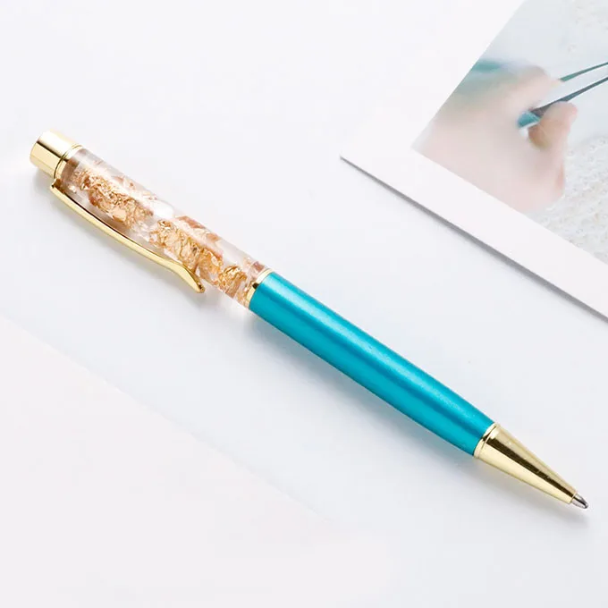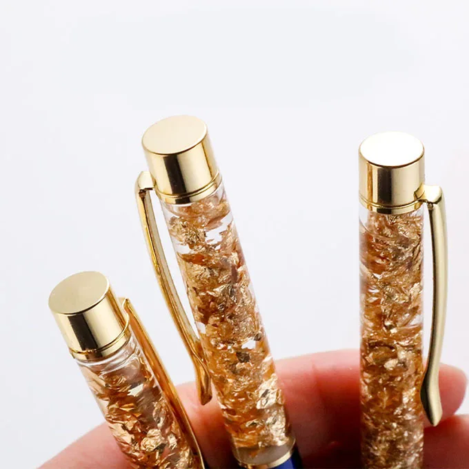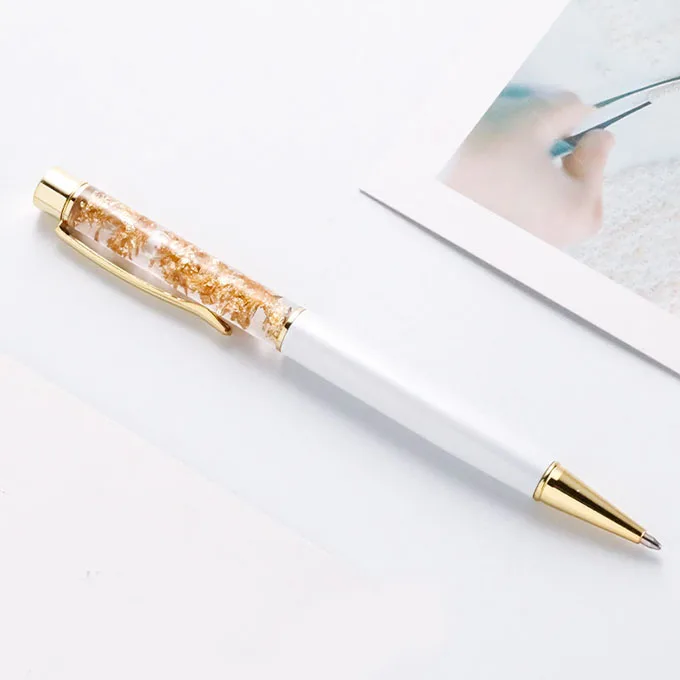 Beauty Fashion Gold Foil Pen Promotional Gift Custom logo Liquid Floating Glitter Metal Ball Pen
