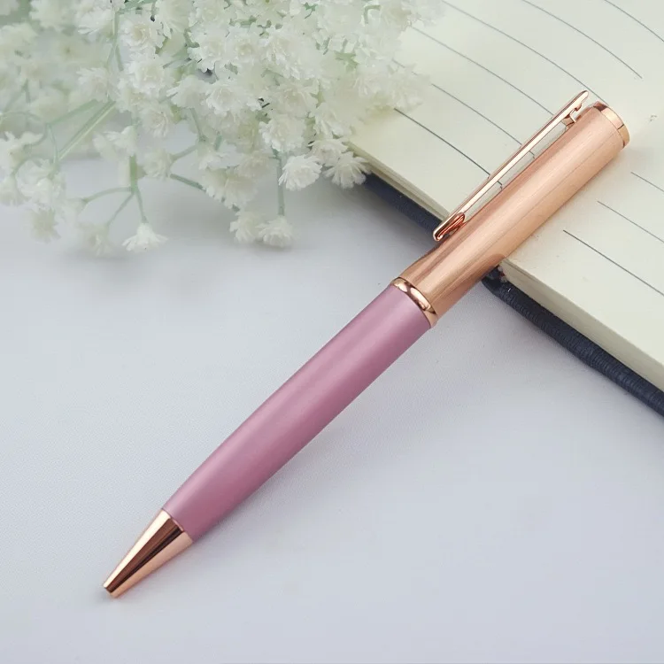 Twist Ballpoint Pen Luxury Fashion Elegant Rose Gold White Body Metal Pen