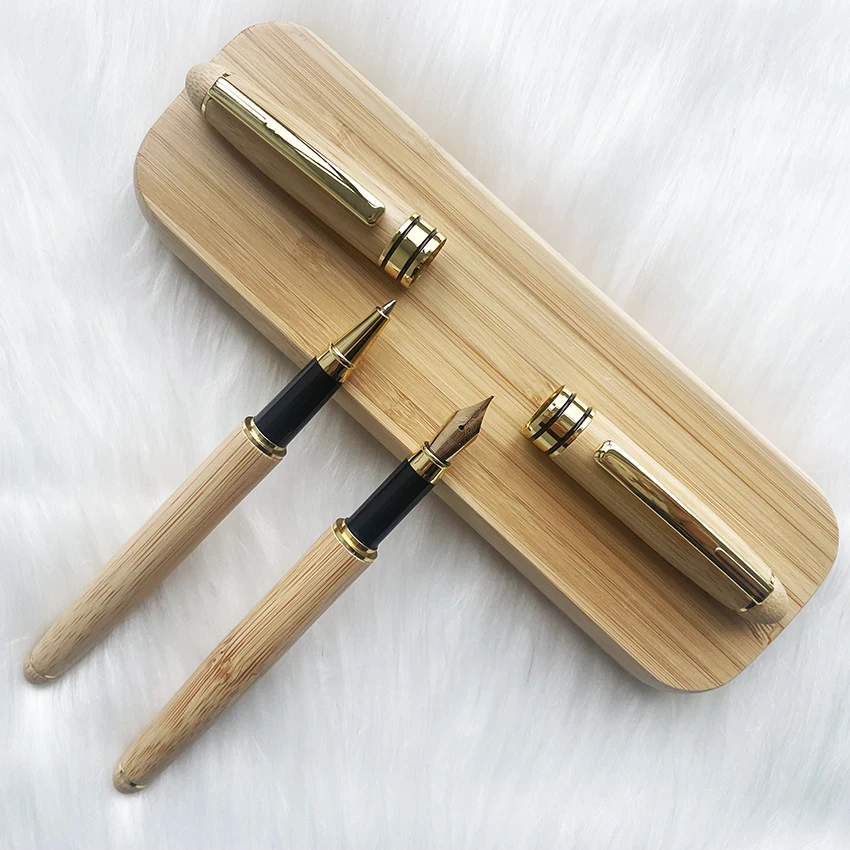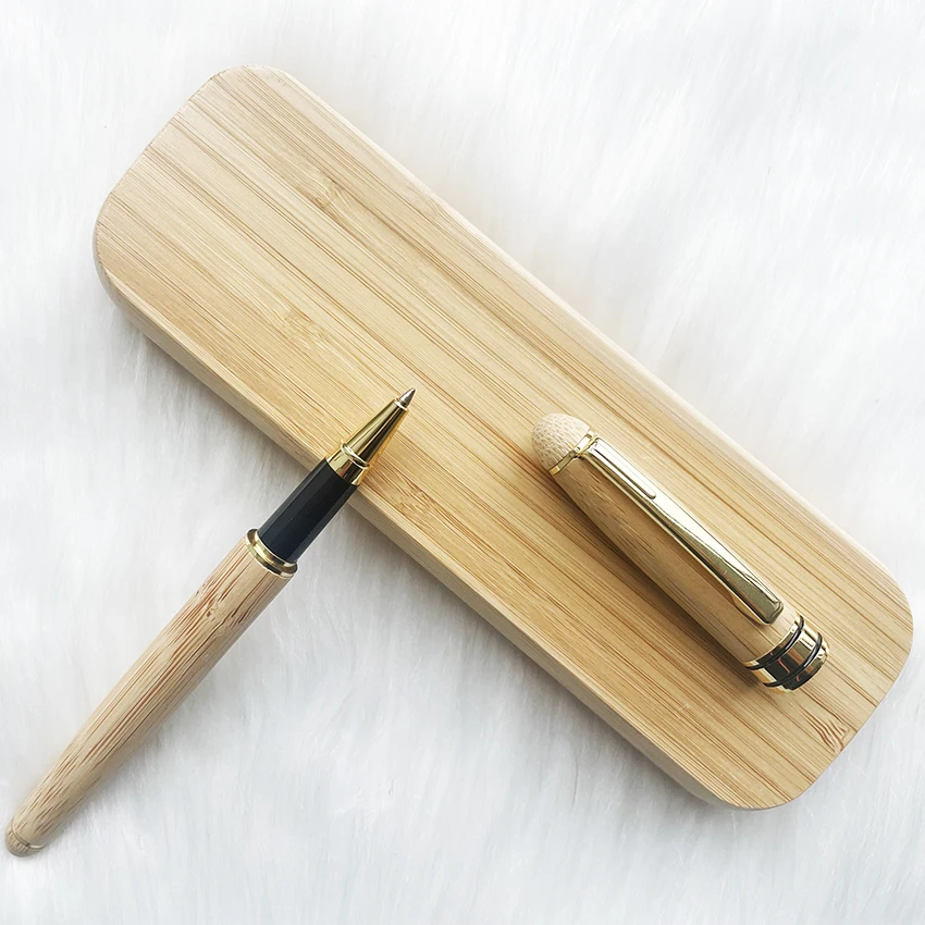 Hot Selling Luxury Business Gift Wood Bamboo Roller Pen Set with Custom logo Promotion Bamboo Roller Pen with Bamboo Box