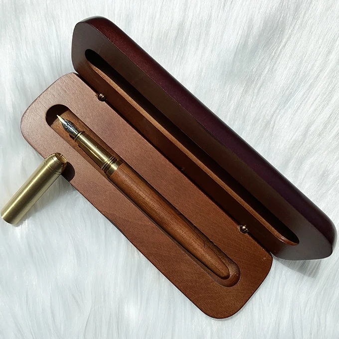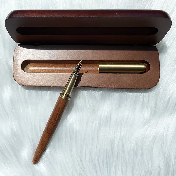 Wholesale Office Supplies Luxury Brass Wood Fountain Pen with Custom logo Business Promotion Wood Fountain Pen Set with Box