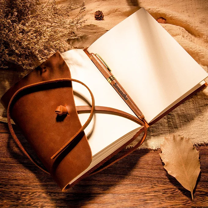 Luxury Leather Notebook with Logo, Personalized Business Diary Gift