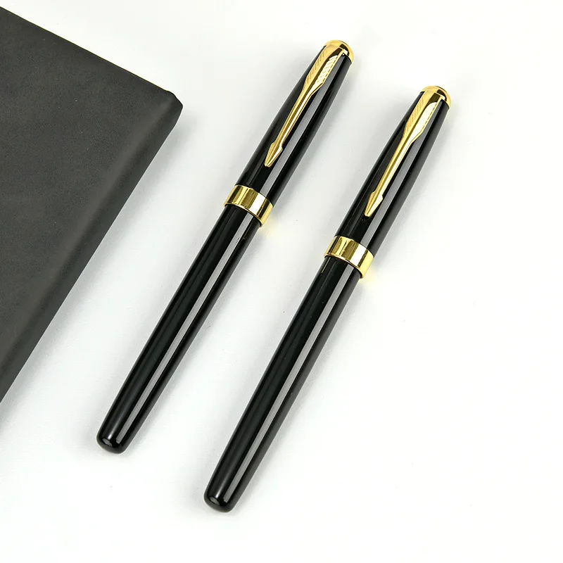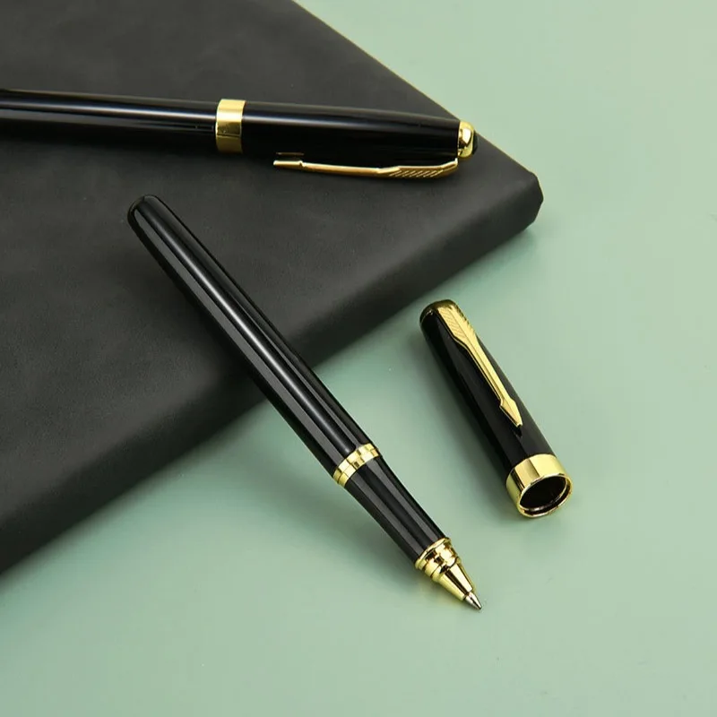 High Quality Executive Luxury Pen Set Black Gold Metal Roller Ball Pen Custom Logo With Gift Case