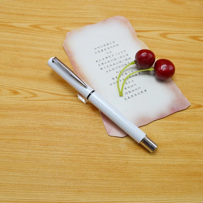High Quality Advertising Custom Logo Imprint Blue Gel Pen Promotional White Plastic Pen 0.7mm Writing Width Gel Ink Refill