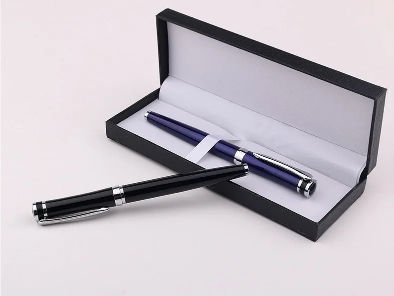 Executive Pen Gift Set Luxury Souvenir Advertising Personalized Custom Logo Text Blue Metal Roller Gel Pen with Black Gift Box