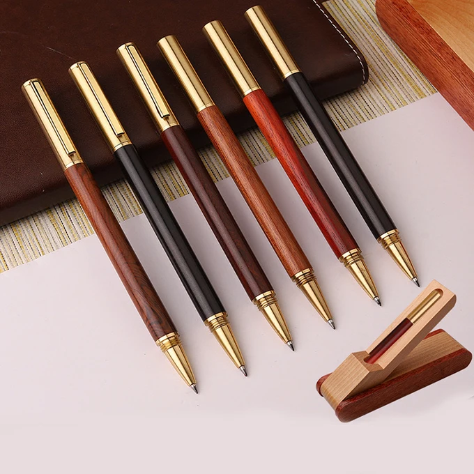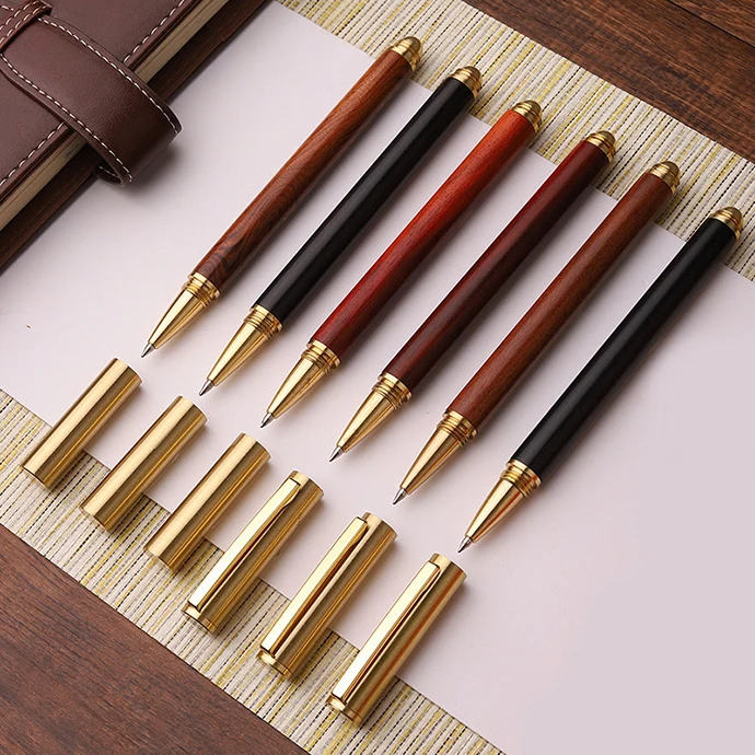 Luxury Customized Engraving Logo Brass Wood Roller Gel Ink Pen