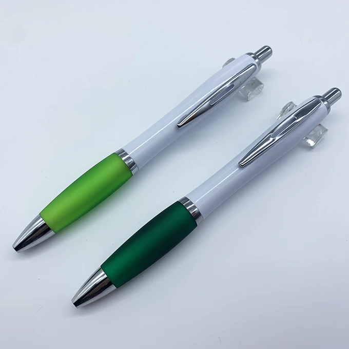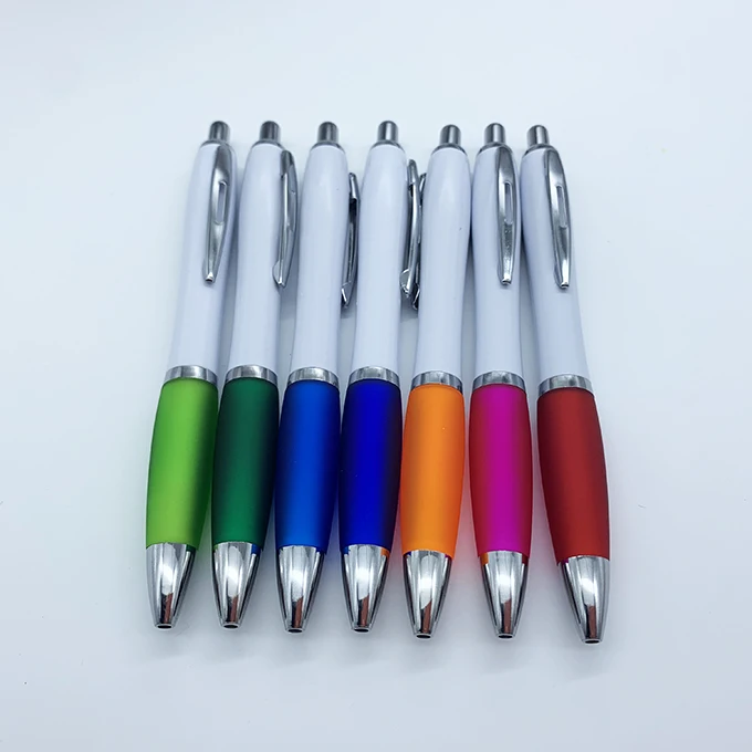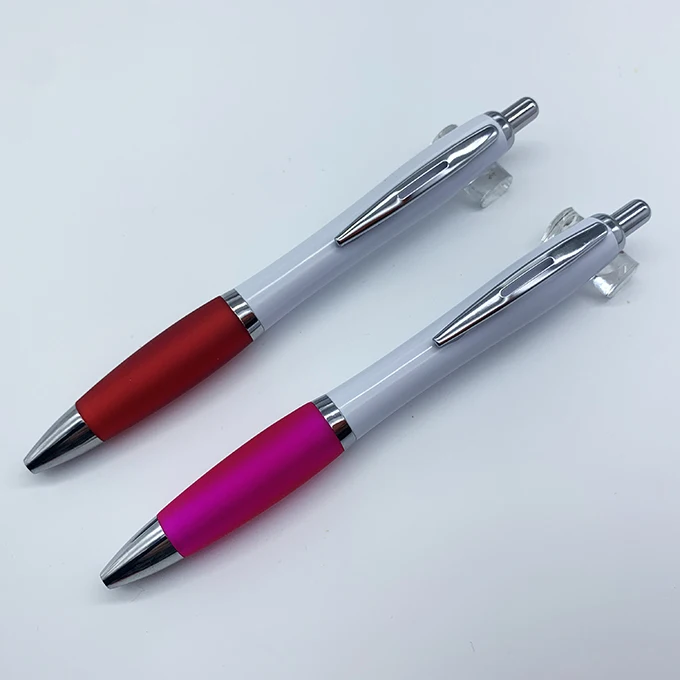 Hot Selling White Click Plastic Ballpoint Pen with Custom logo Office Supplies Rubber Coated Promotion Plastic Ballpoint Pen