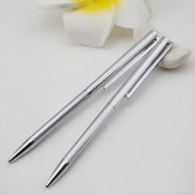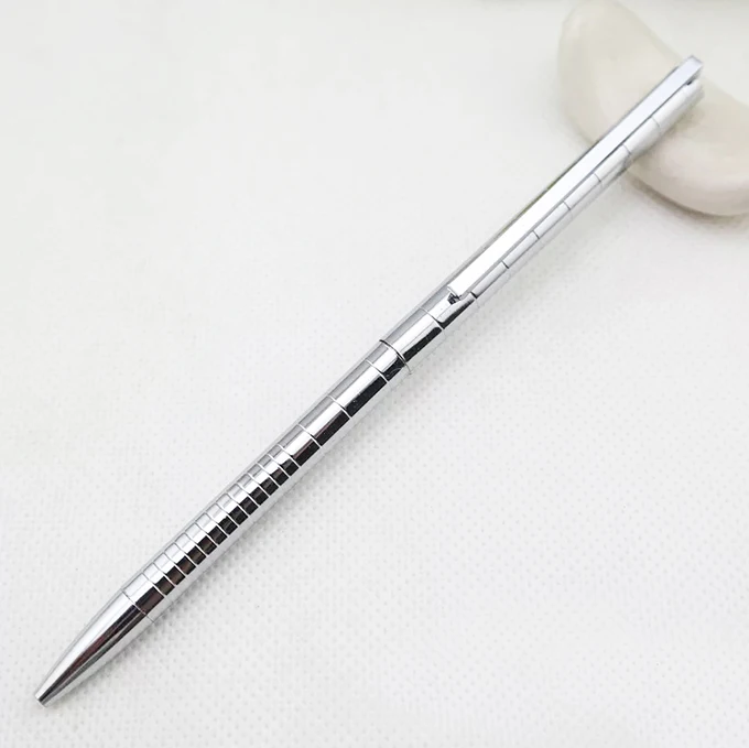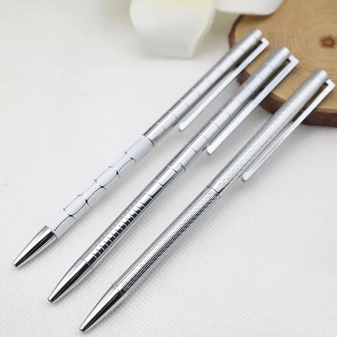 Wholesale Promotion Business Gift Sliver Slim Metal Ball Pen with Custom logo Office Supplies Novelty Twist Metal Ballpoint Pen