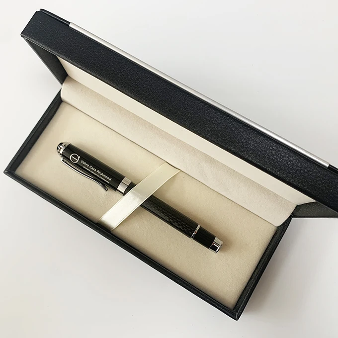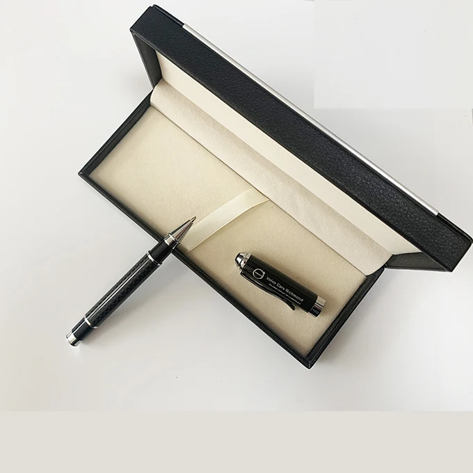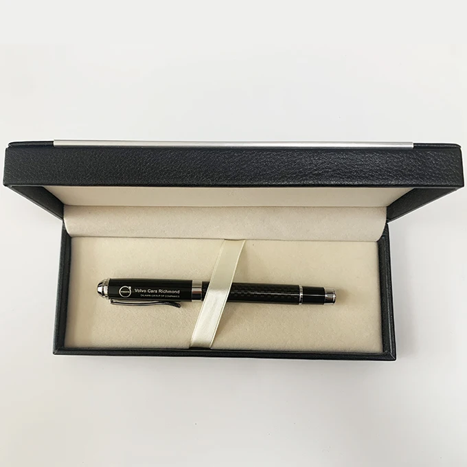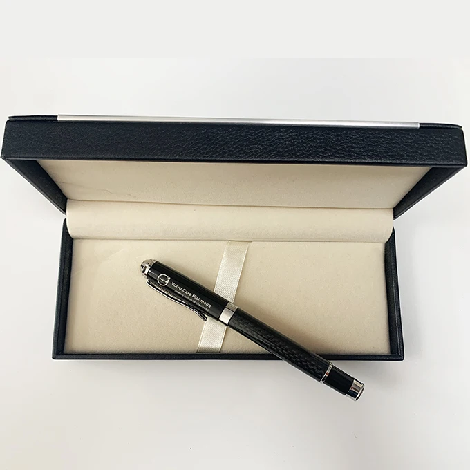 Wholesale Heavy Luxury Carbon Fiber Metal Roller Pen With Custom logo Novelty Metal Ballpoint Roller Pen Set With PU Leather Box