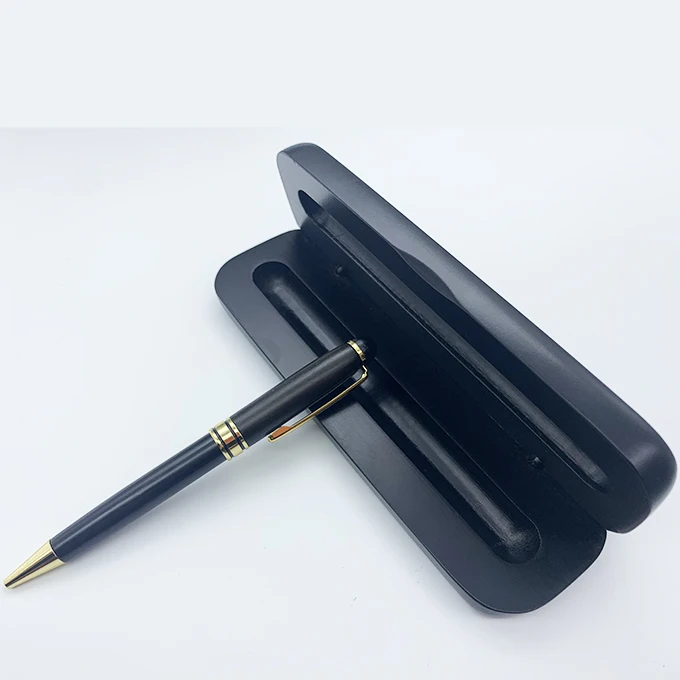 Wholesale Luxury Business Gift Promotion Black Wood Pen with Custom Engraved logo Christmas Gift Wood Ballpoint Pen Set with Box