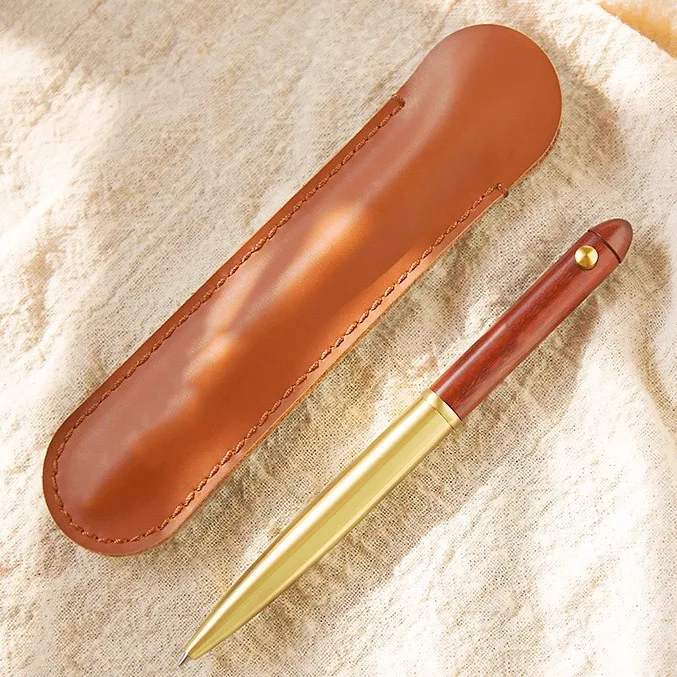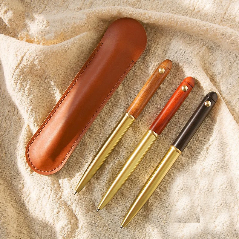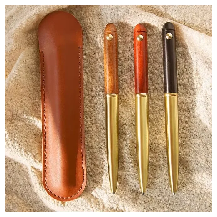 Custom Logo Pen With Pouch Popular Luxury Brass Wood Pen