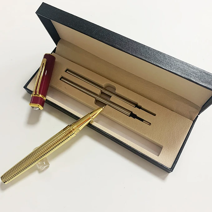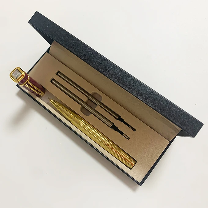Promotion Heavy Luxury Business Gift Gold Metal Roller Pen With Crystal Diamond on Top Metal Gift Pen Set with Box & extra Ink
