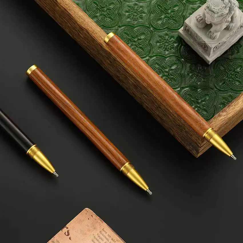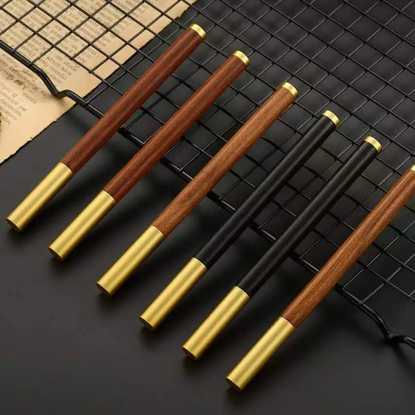 Brass Cap Custom Engraved Logo Luxury Handmade Natural Solid Wood Rollerball Pen