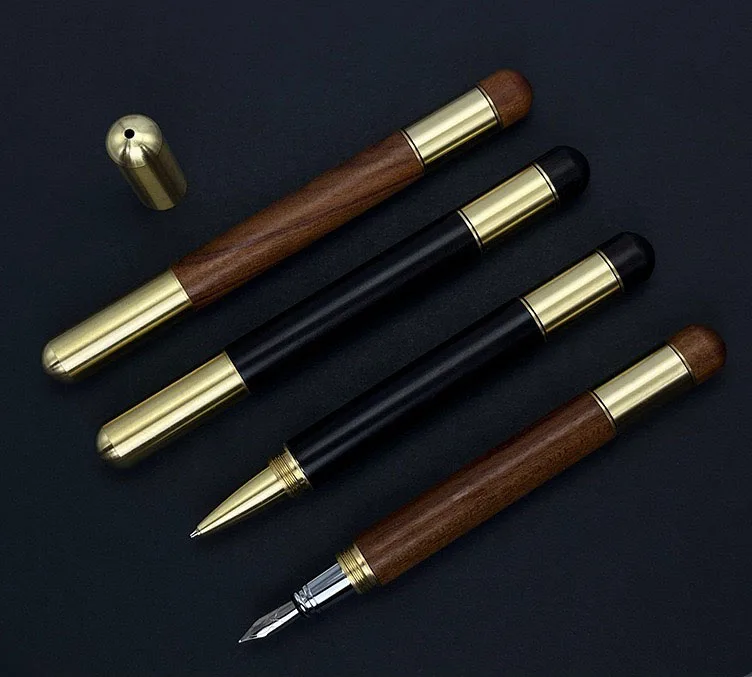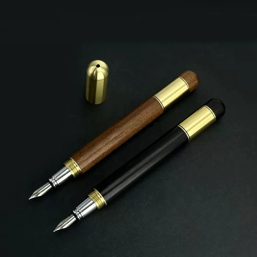 Custom Engraving Logo Premium Elegant Handmade Brass Wood Calligraphy Fountain Pen for Writing