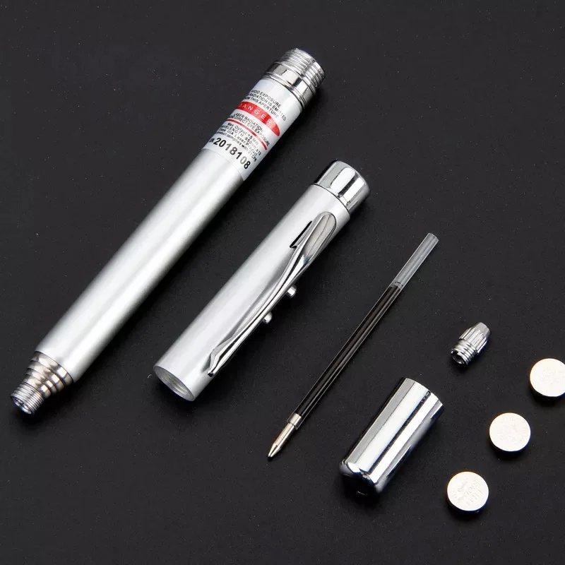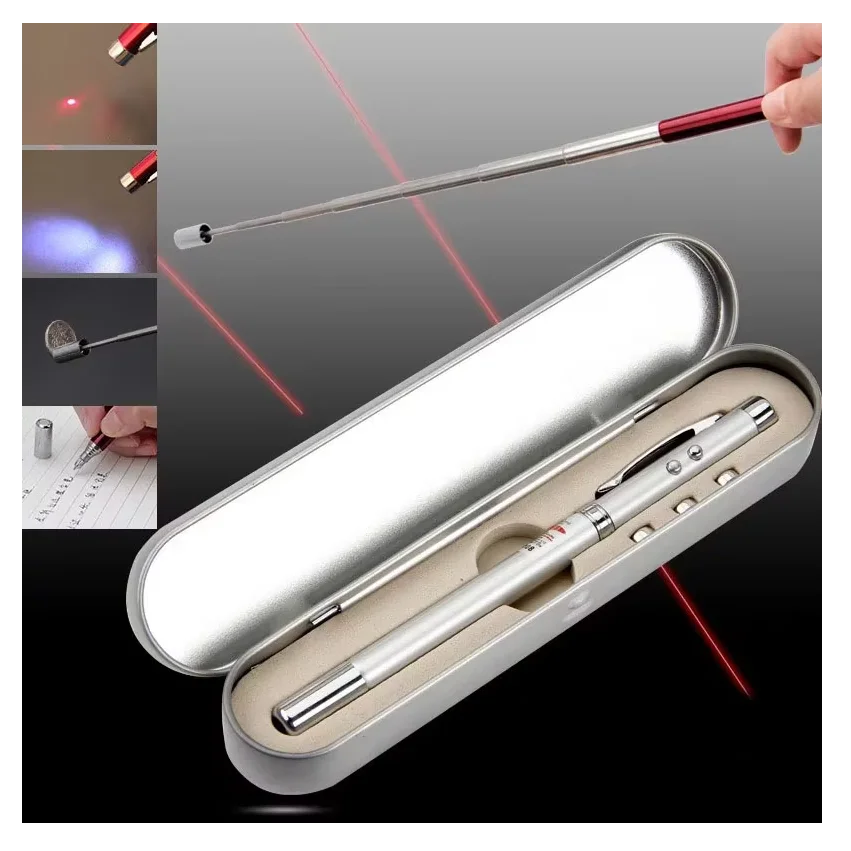 5 in 1 Red Laser Pointer Retractable Telescopic Antenna Teaching Pointer Magnet Pen LED Flashlight Ball Pen with Metal Case
