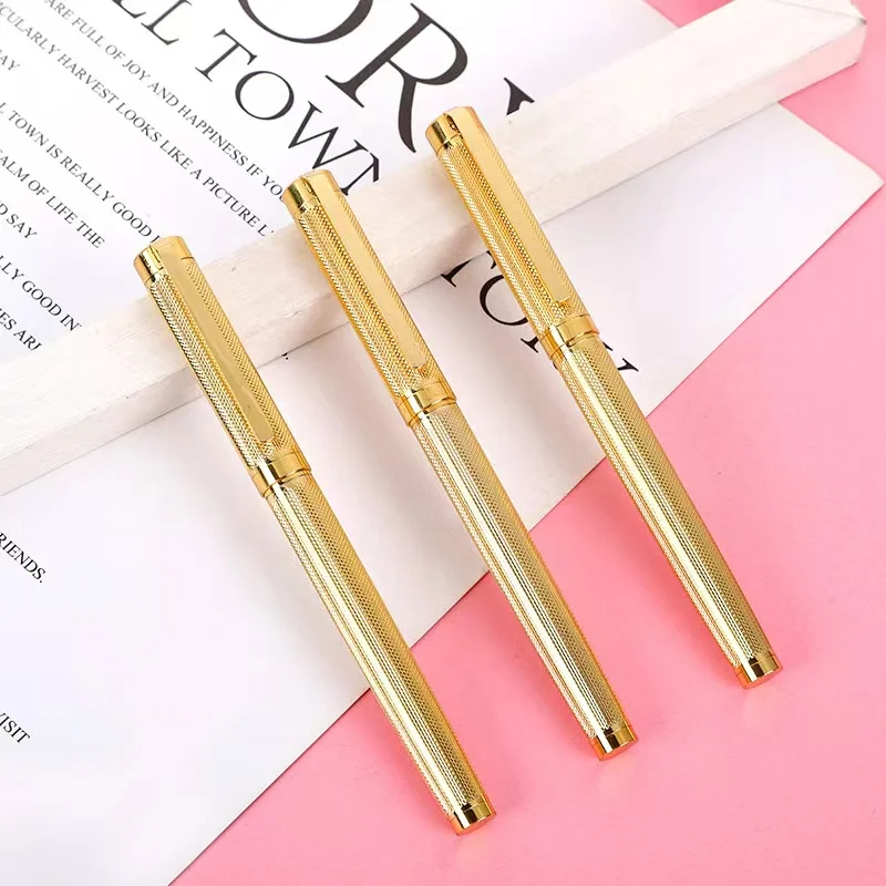 Engrave Body Gold Metal Rollerball Pen with Custom logo Men Writing Tool Gift Gold Pen