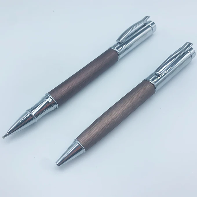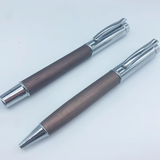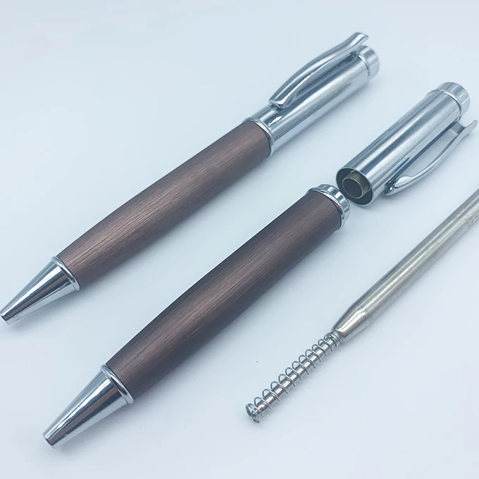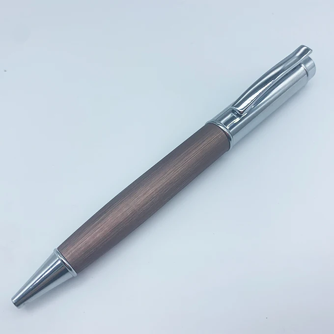Hot Selling Luxury Brown Brushed Metal Ball Pen with Custom Logo Office Supplies Business Promotion Twist Metal Ballpoint Pen