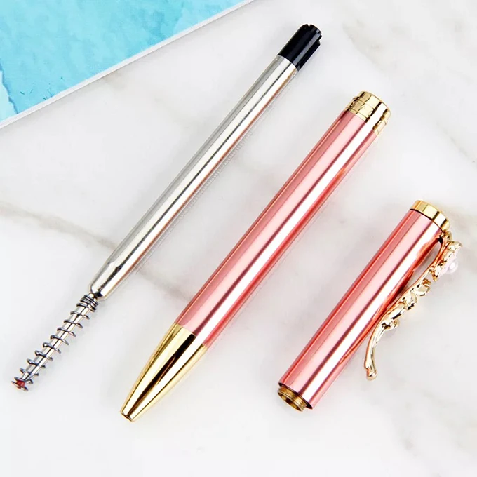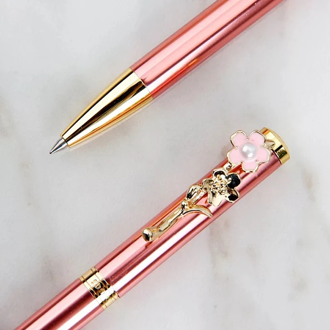 Pretty Beautiful Lady Ball Pen Metallic Wedding Guests Gift Flower Clip Pens Custom Logo