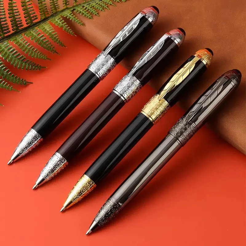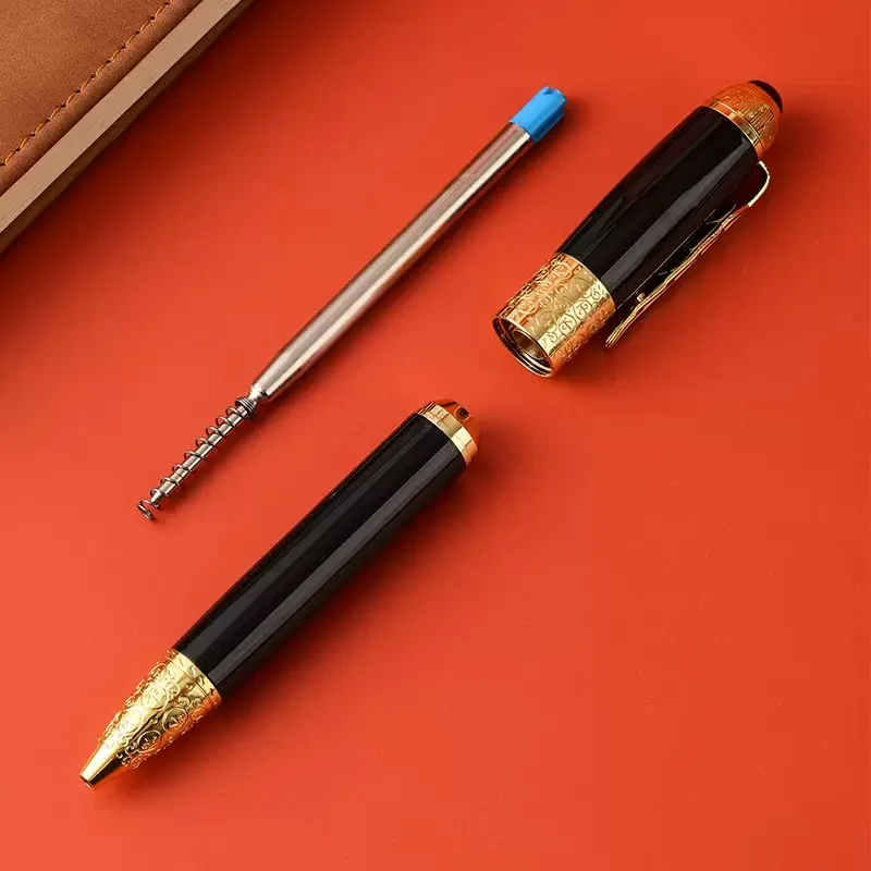 Luxury Heavy Black Metal Ballpoint Pen Customized Logo Big Business Gift Writing Pen
