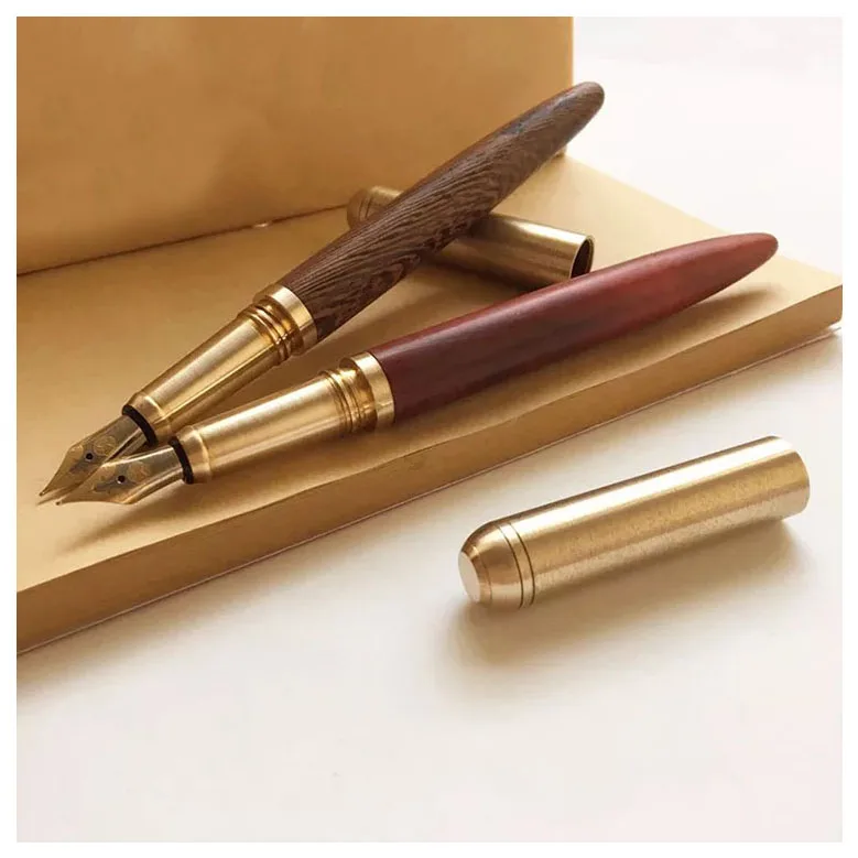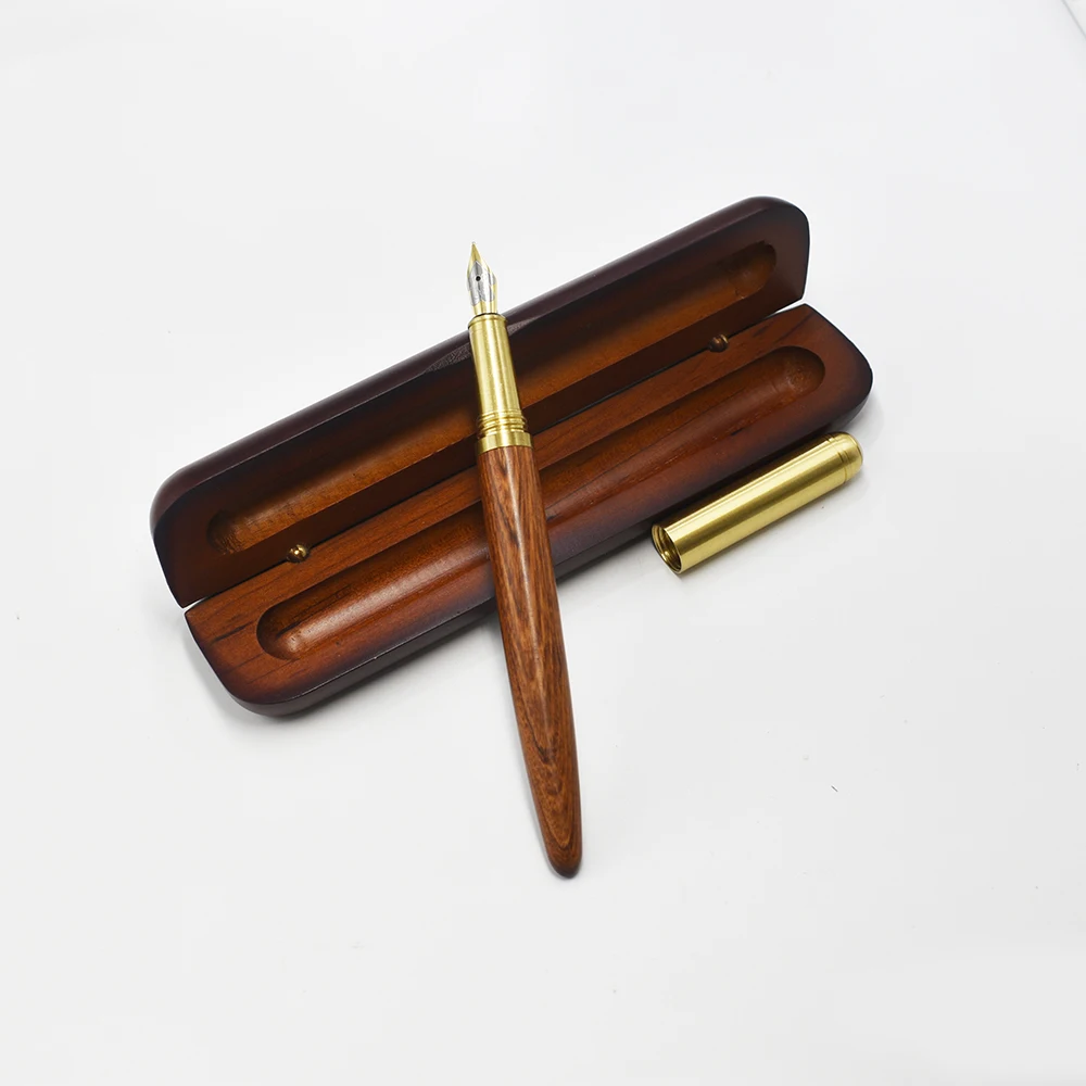 Office Stationery Writing Tool High Quality China Custom Logo Luxury Brass Wooden Calligraphy Fountain Pen Set with Gift Box