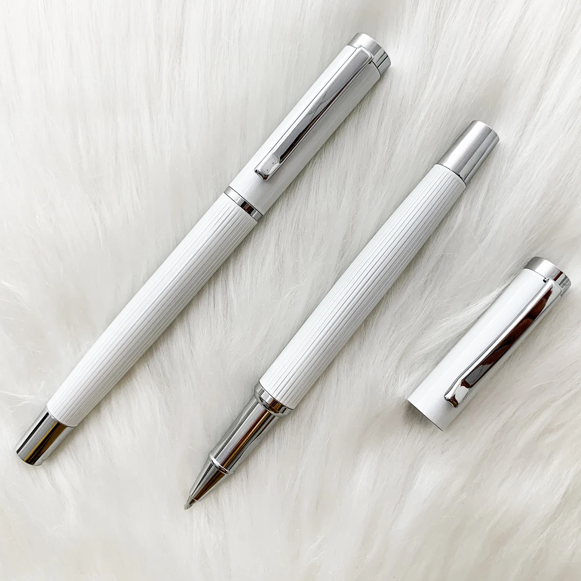 2026 High Quality Luxury White Metal Roller Pen With Custom logo Office Supplies Business Promotion Metal Ballpoint Roller Pens