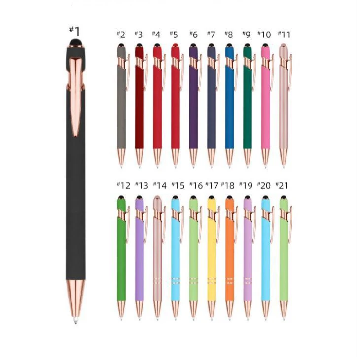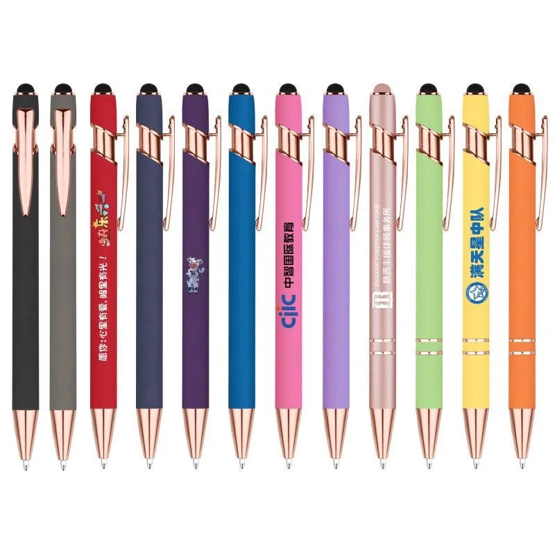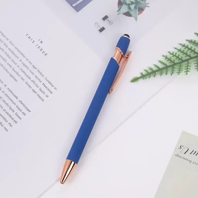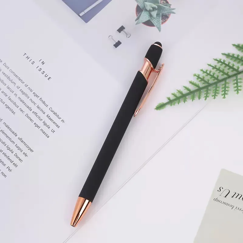 Luxury Metal Ballpoint Pen with Rubber Finish Promotion Soft Touch Screen Stylus Pen Rose Gold for Mobile Phone Custom Logo Pen