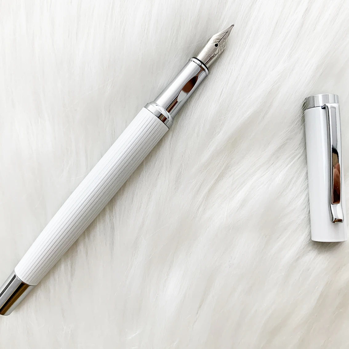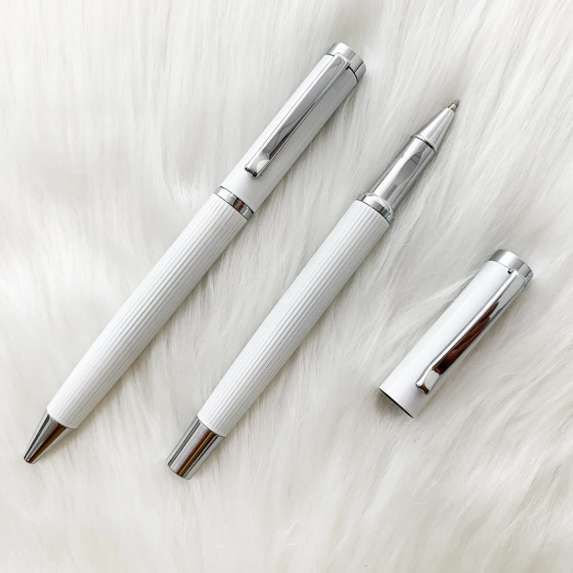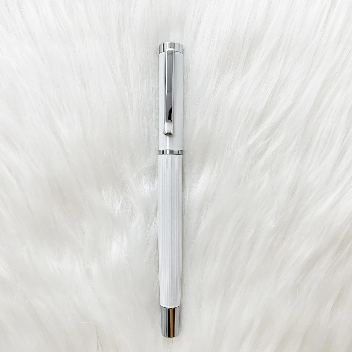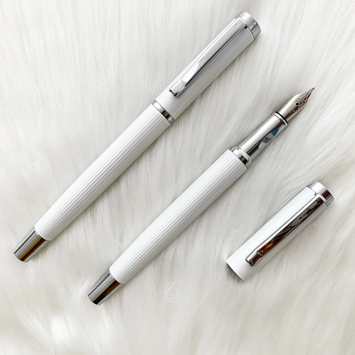 Wholesale Luxury Business Promotion White Metal Fountain Pen with Custom logo Calligraphy Office Supplies Metal Fountain Pen