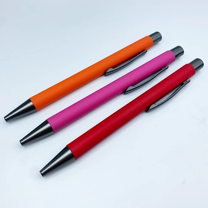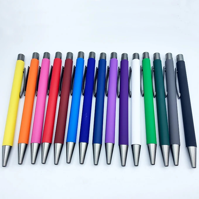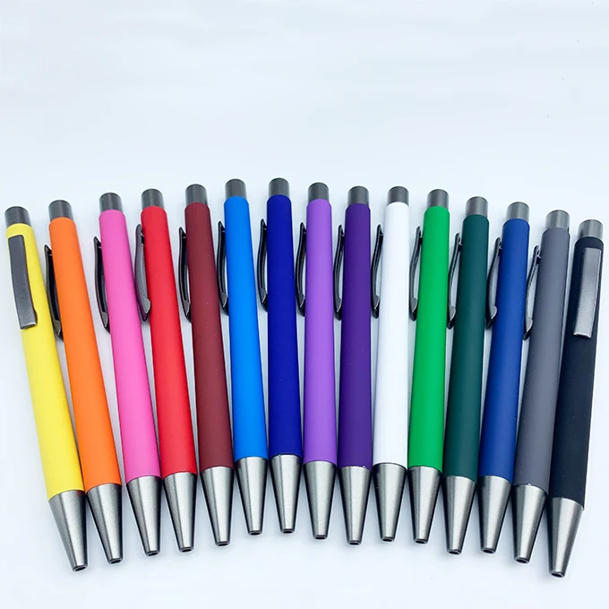 2026 Hot Selling Promotion Business Rubber Coated Metal Ball Pen with Custom logo Office Supplies Colorful Click Metal Pen