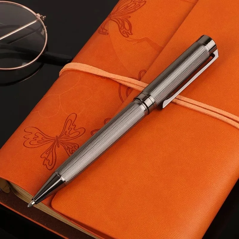 Hot Selling Luxury Sliver Twist Metal Ball Pen with Custom logo Engraved Office Supplies Promotion Silver Metal Ballpoint Pen