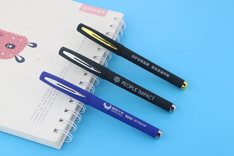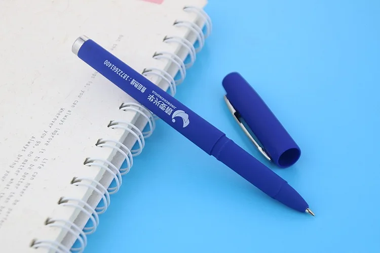 Office Writing Customized Logo Adverting Promotional Blue Pens Gel Ink High Quality Rubber Finished Gel Pen