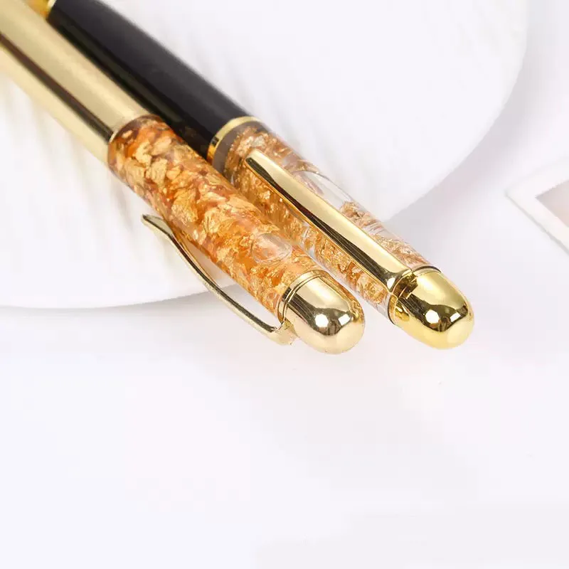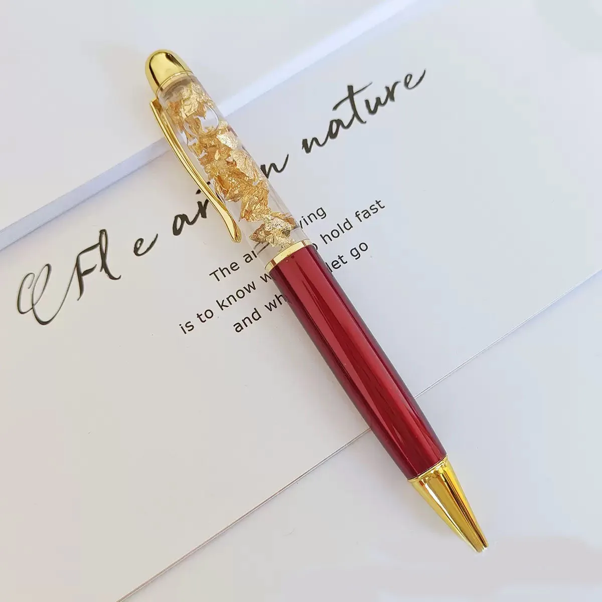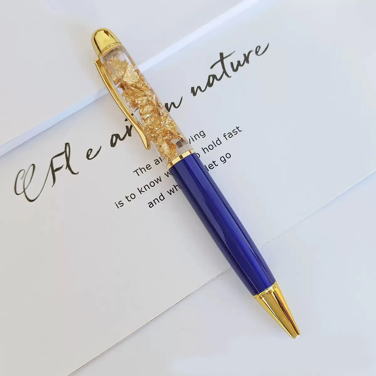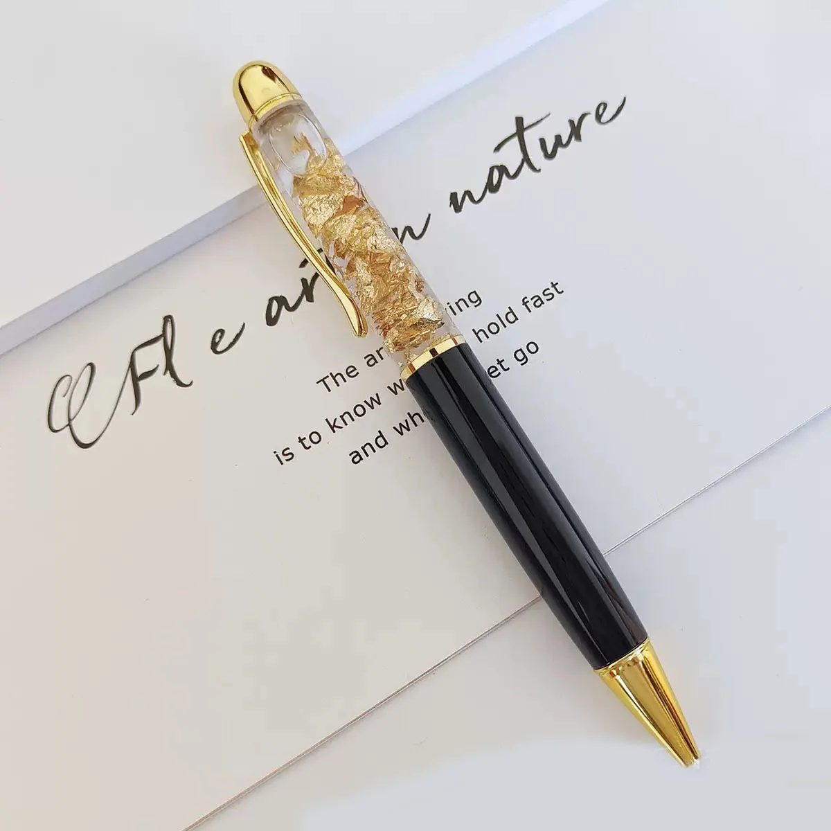 High Quality Beauty Fashion Big Golden Foil Shiny Glitter Floating Liquid Sparkle Metallic Glitter Ball Pen with Custom Logo