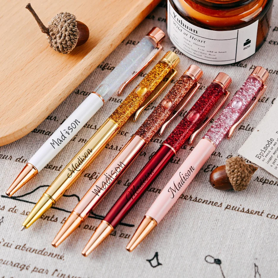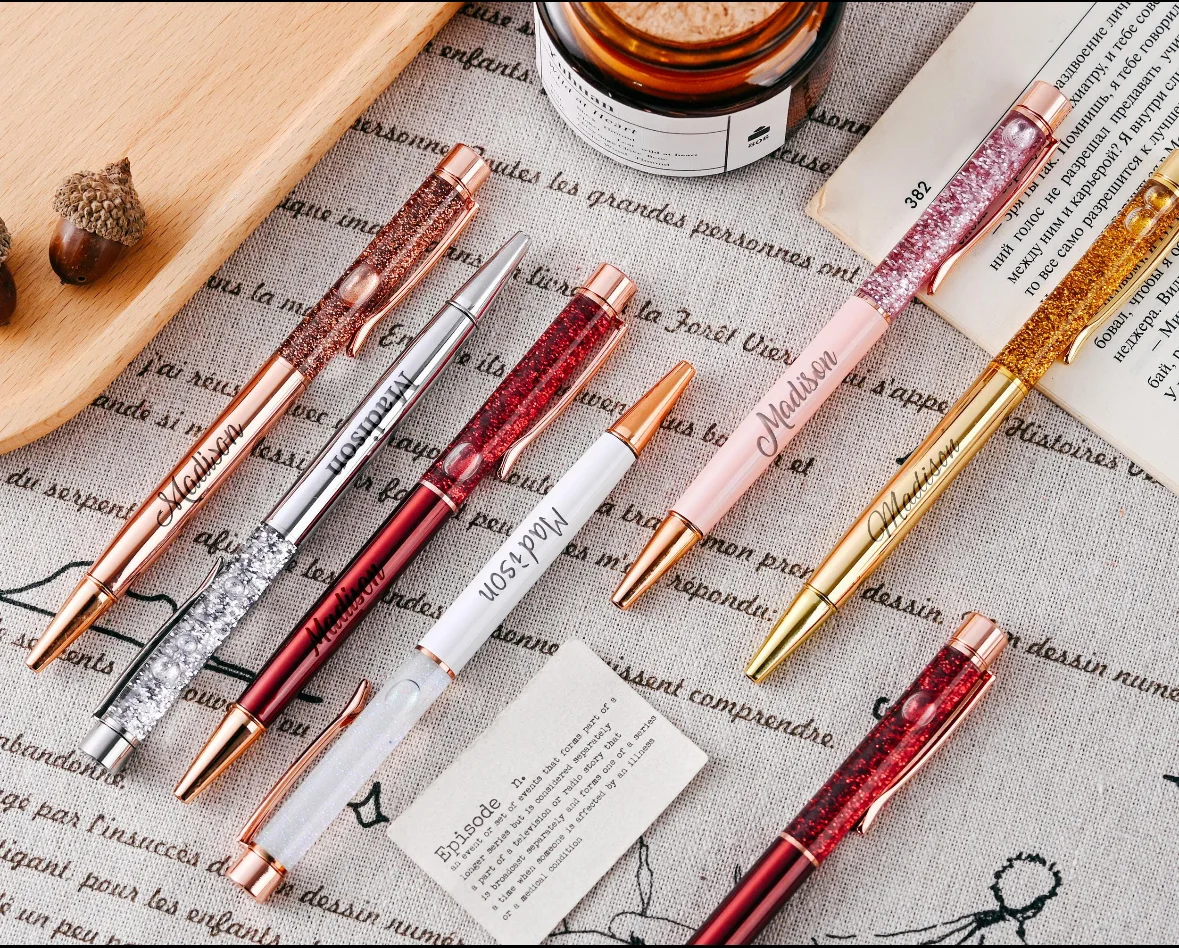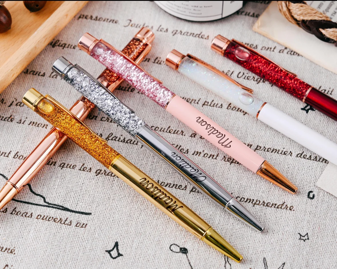 Metal Crystal Ball Pen Floating Golden Flakes inside Pens with Glitter and Gold Foil Liquid Sand Custom Logo Gift Promotion Pen