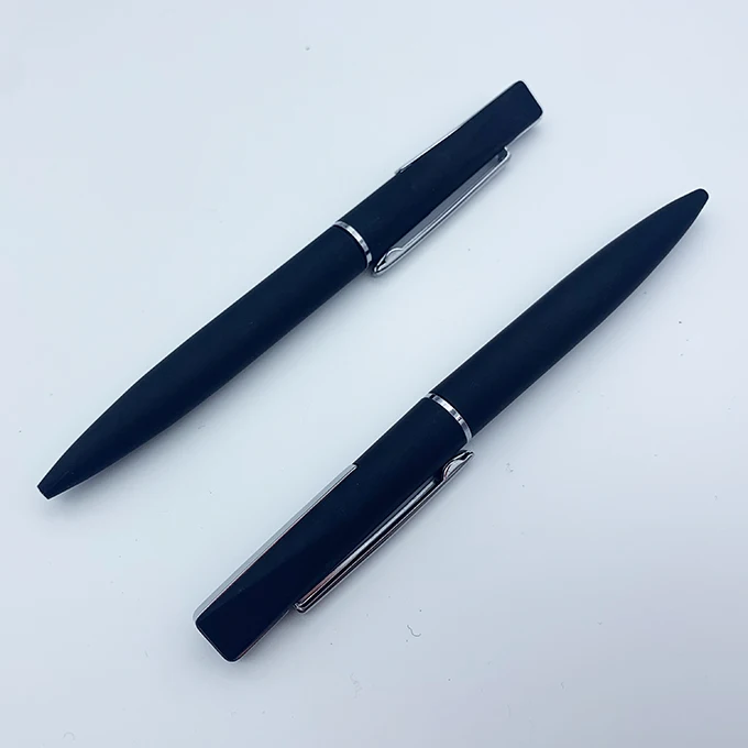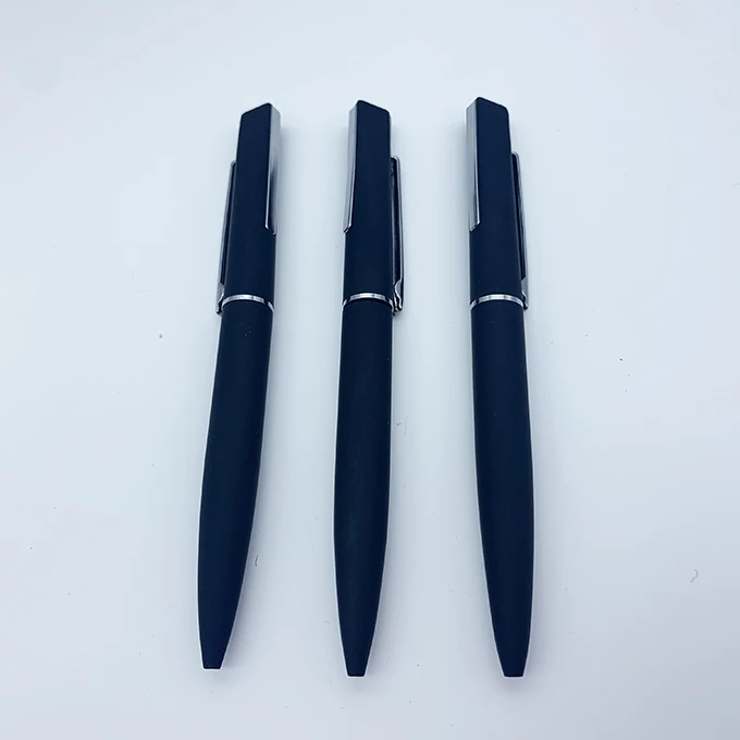 High Quality Luxury Business Gift Black Rubber Coated Metal Ball Pen with Custom logo Office Supplies Metal Ballpoint Pen