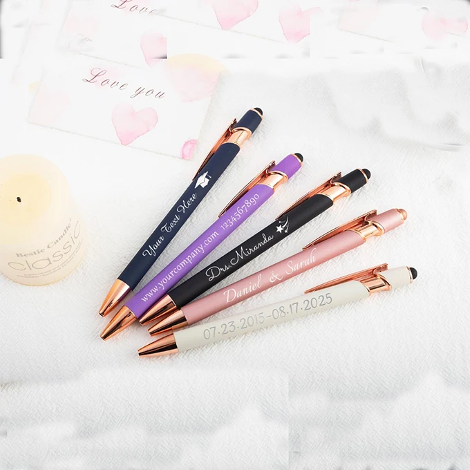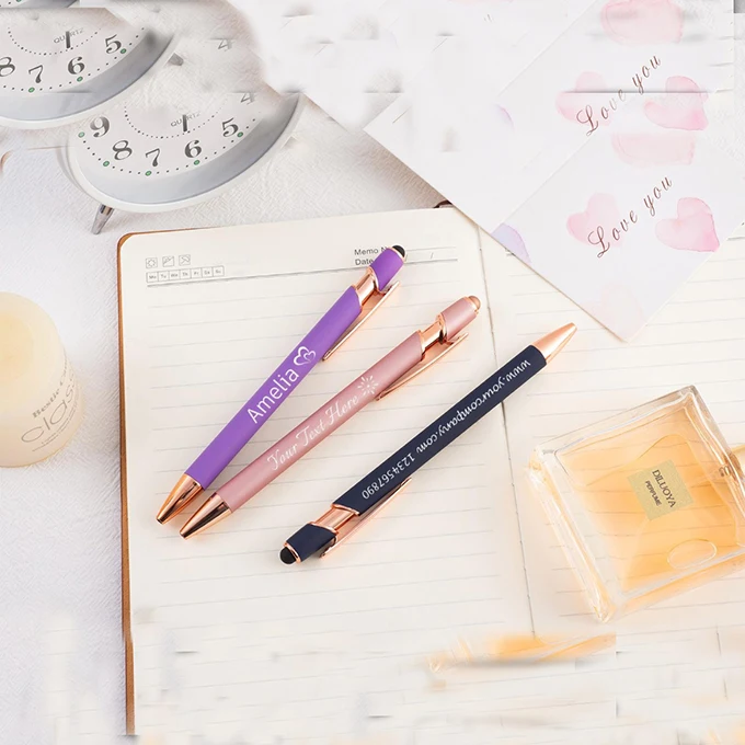 Hot Selling High Quality Business Gift Soft Rubber Coated Metal Ball Pen with Custom Logo Twist Metal Pen with Touch Screen