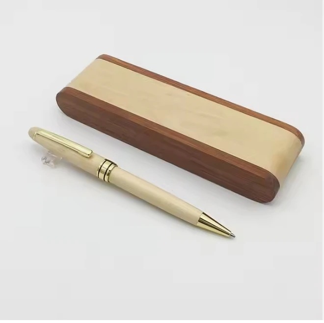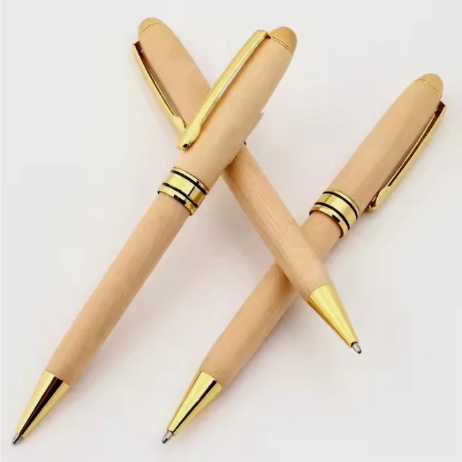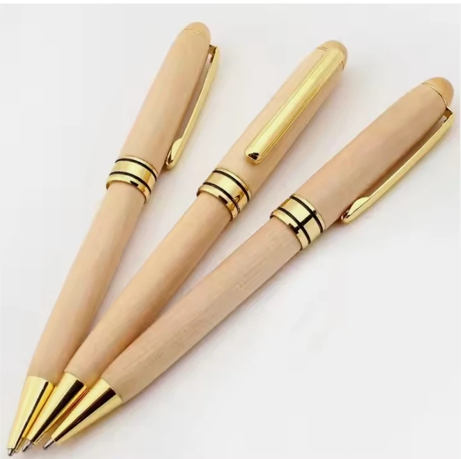 Hot Selling Business Gift Luxury Maple Wood Ball Pen Set with Custom Logo Engraved Promotion Wood Pen Set with Multi Color Box