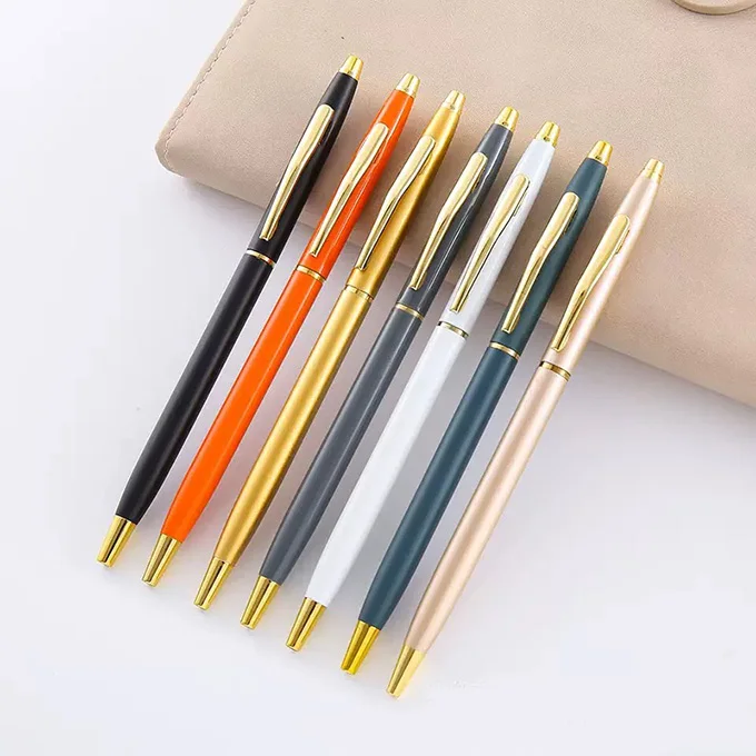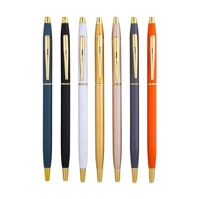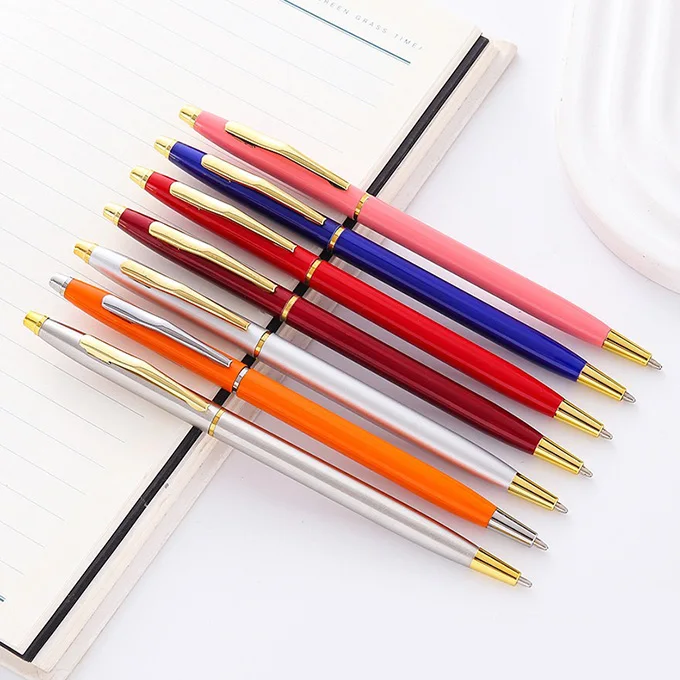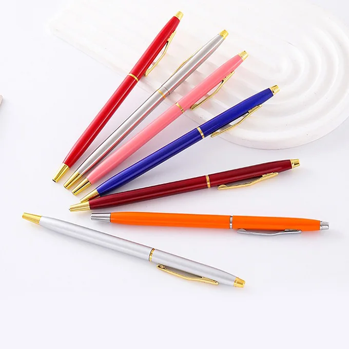 High Quality Slim Thin Hotel Promotional Pen Custom Company Logo Free Gift Advertising Metal Ball Pen