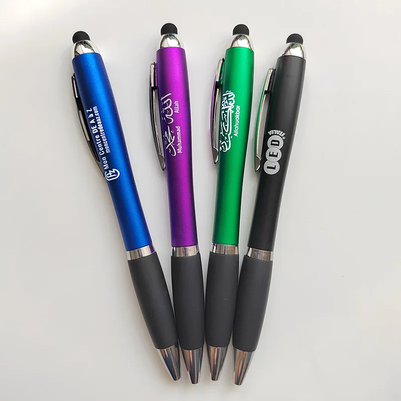 Hot Selling Advertising Plastic LED Light up Soft Touch Screen Pen with Custom Logo Office Supplies Plastic Twist Ballpoint Pen
