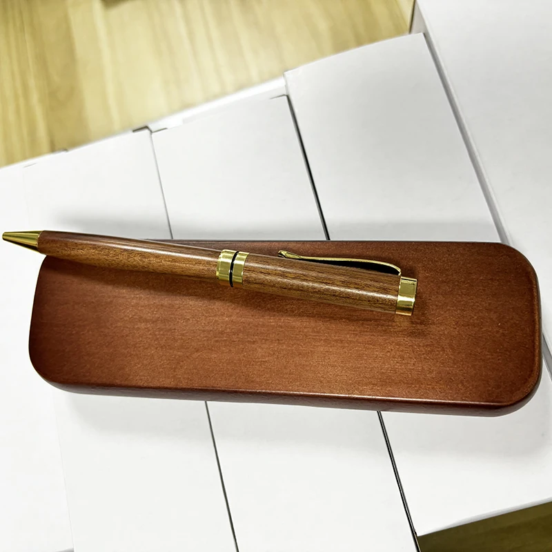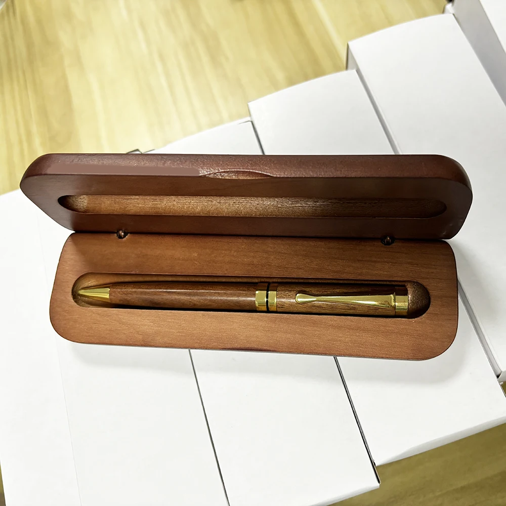 Factory High Quality Luxury Customized Engraving Personalized Logo Christmas Gift Brown Wood Ballpoint Pen Set with Wood Box