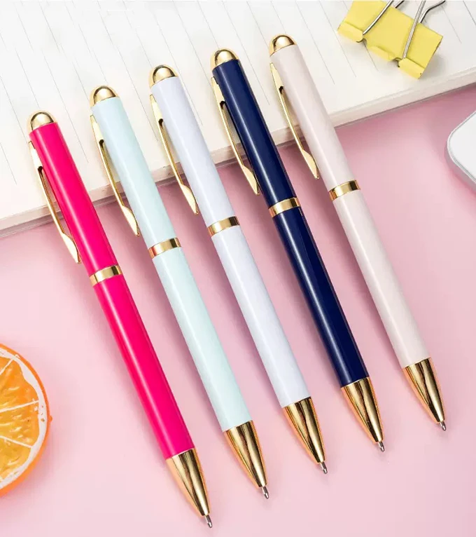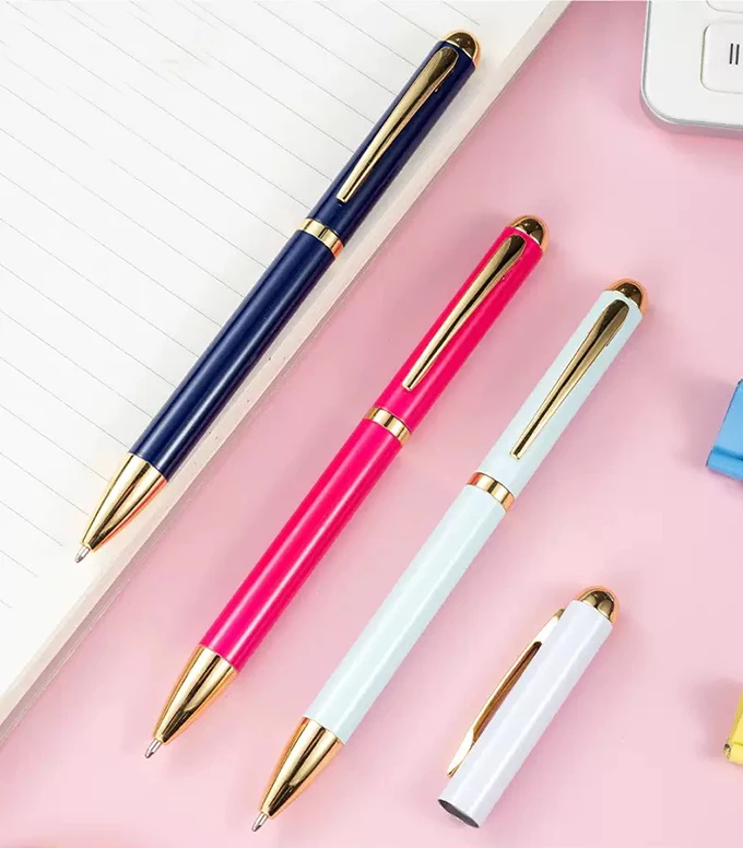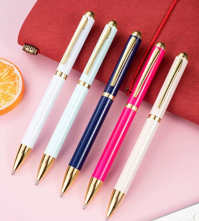 Beauty Fashion Ballpoint Pens High Quality Customized Logo Imprint Twist White Metal Ball Pen Promotional