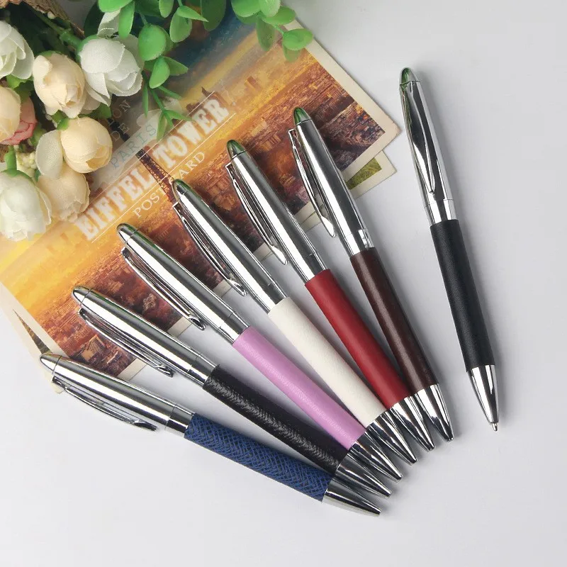 High Quality PU Leather Metal Ball Pen with Custom logo Engraved Office Supplies Promotion Gift Sliver Metal Ballpoint Pen