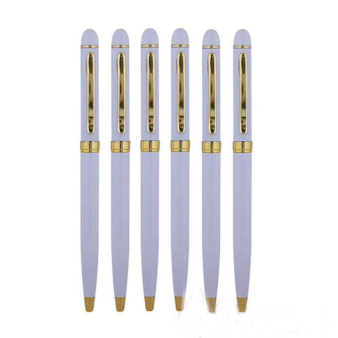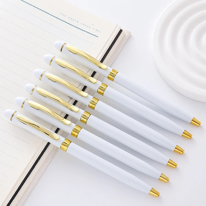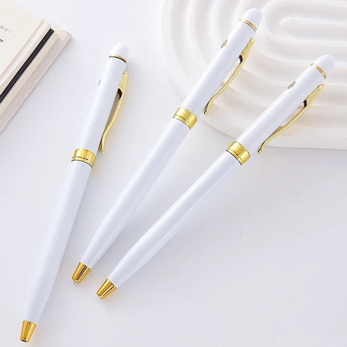 Hot Selling High Quality Slim White Metal Ball Pen with Custom Logo Promotion Hotel Gift White Twist Metal Ballpoint Pen