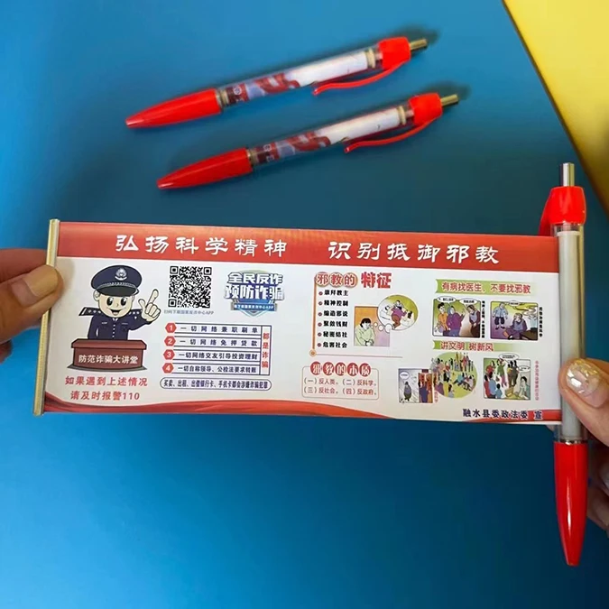 High Quality Promotion Pull Out Banner Pen with Custom Logo Advertising Plastic Click Plastic Ballpoint Pen with Rolling Flag