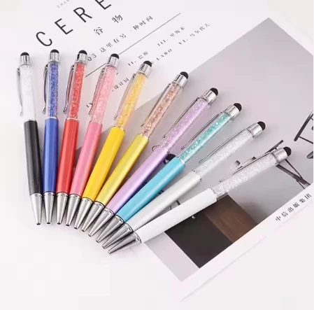 2026 Hot Selling Fashion Crystal Metal Ball Pen with Custom logo Promotion Gift Metal Ballpoint Pen with Touch Screen for Girl