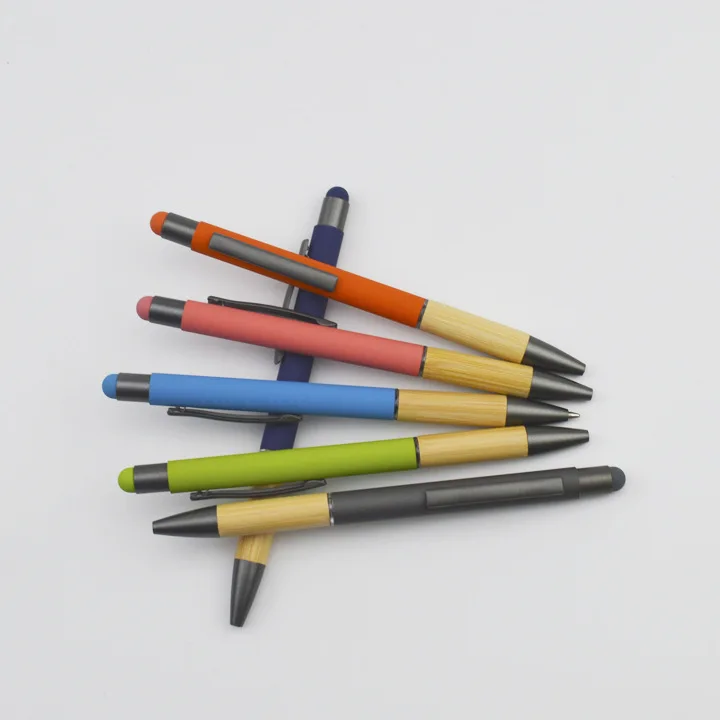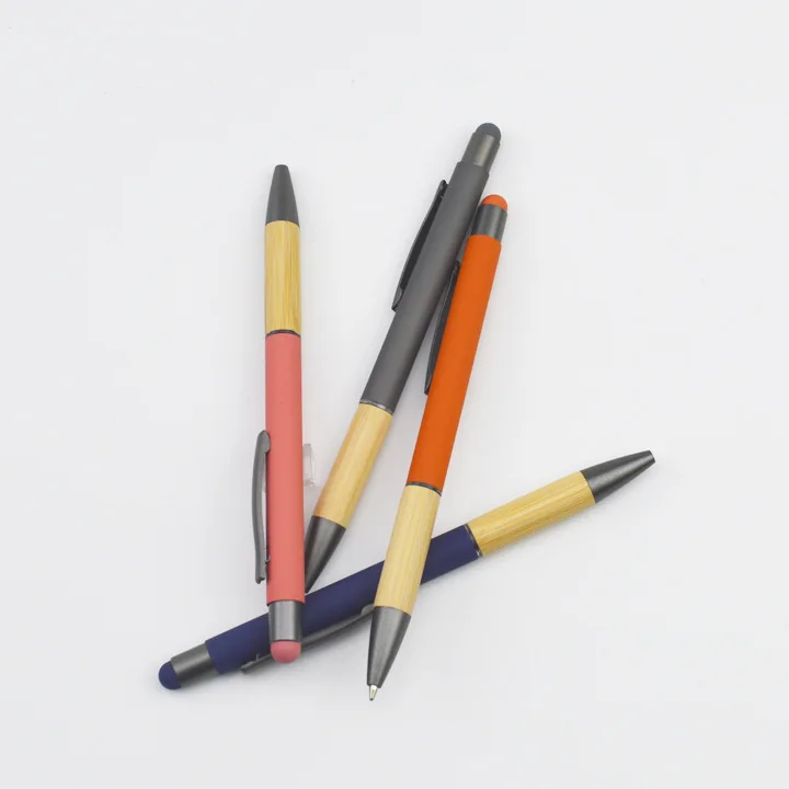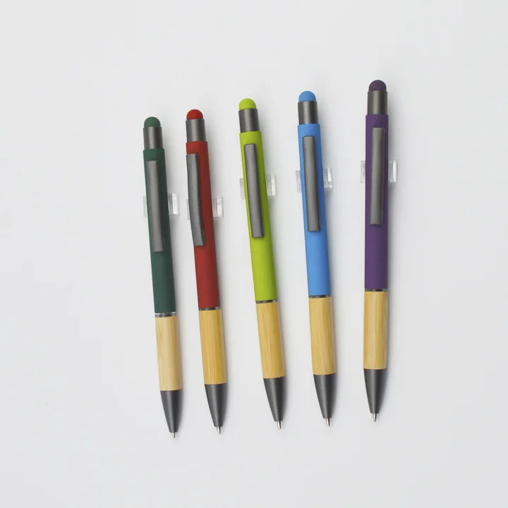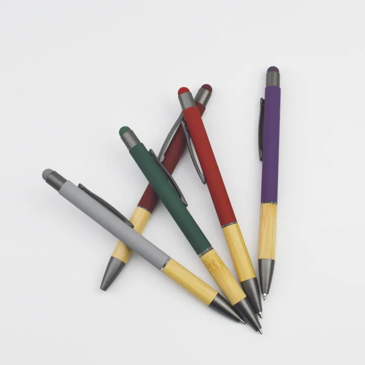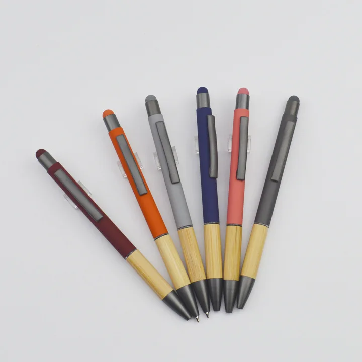 2026 New Promotion High Quality Click Bamboo Ball Pen with Custom Logo Office Supplies Rubber Coated Bamboo Stylus Ballpoint Pen