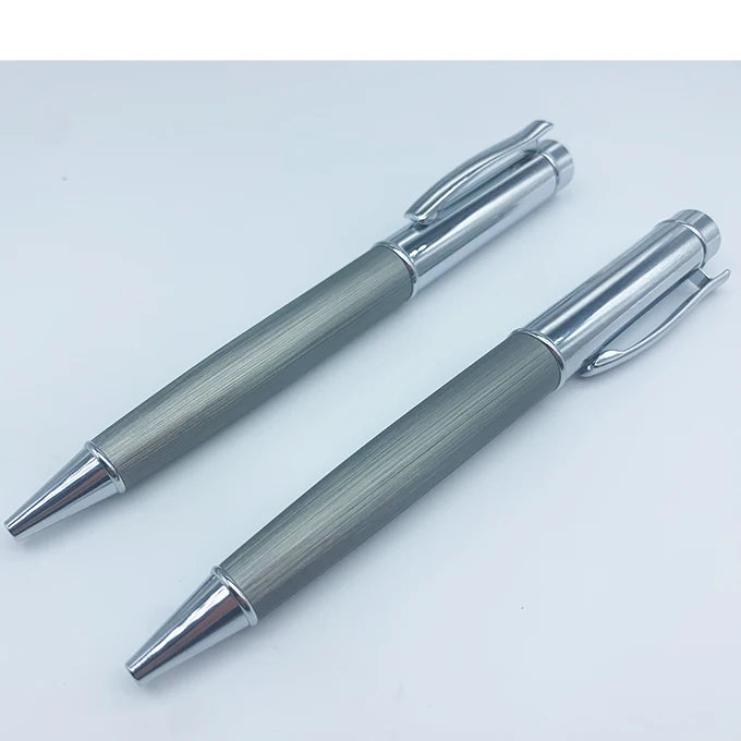 High Quality Luxury Gray Brushed Metal Ball Pen with Custom Logo Office Supplies Business Promotion Twist Metal Ballpoint Pen