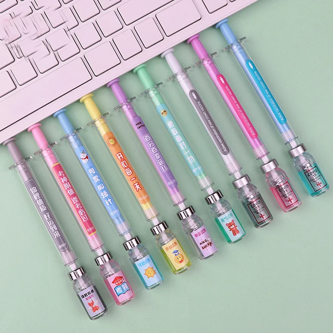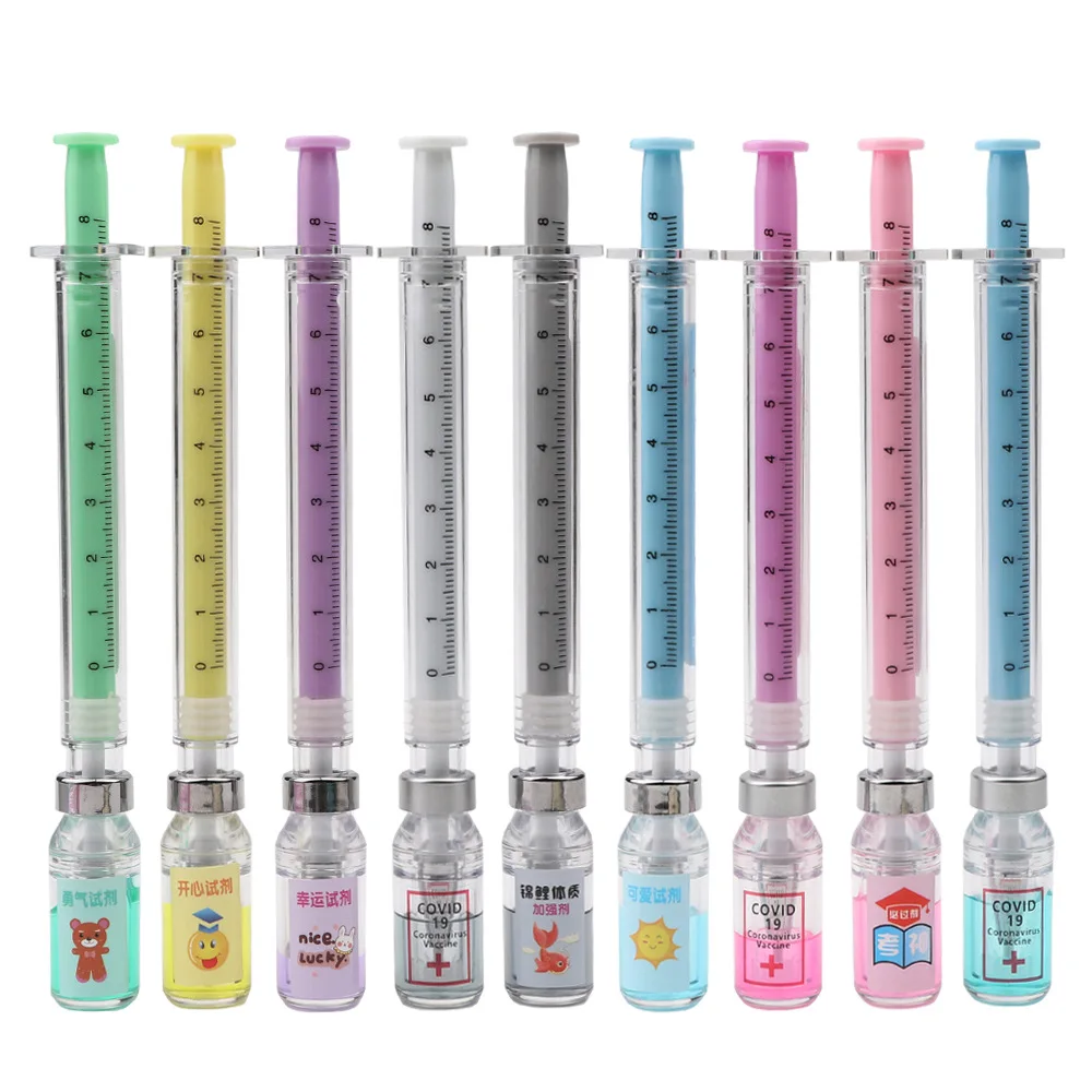 Hot Selling Promotional Colorful Novelty Unique Syringe Shape Plastic Gel Pen With Custom Logo Printing